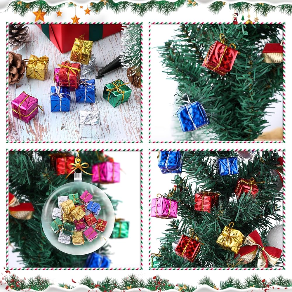 Versatile Decoration: The Christmas mini gift box ornament can be used as decorations to on Christmas tree, wreaths, garlands, around dining tables, on railings, or fireplace mantel, or even use them as unique gift packaging, and on railings to create a festive atmosphere.