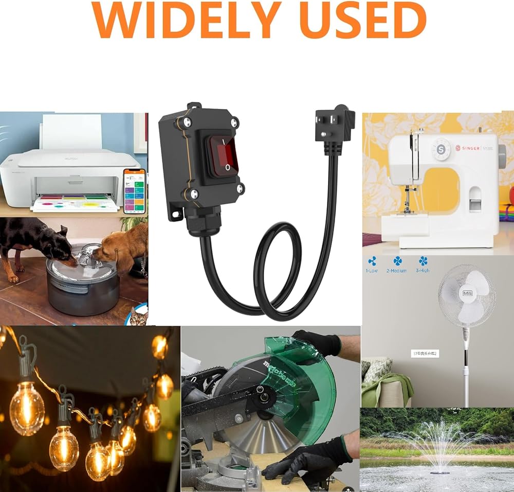 【WIDE APPLICATIONS】: Switched outlet With high-temperature resistant shells, high current switches, and UL approved high-quality cables, our heavy-duty switches can be used in high-power electrical appliances, outdoor appliances, water pumps, LED lights, fans and other outdoor high-power appliances