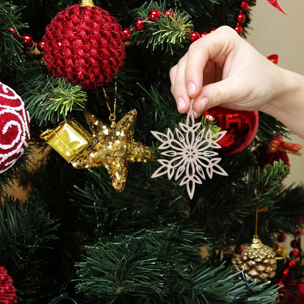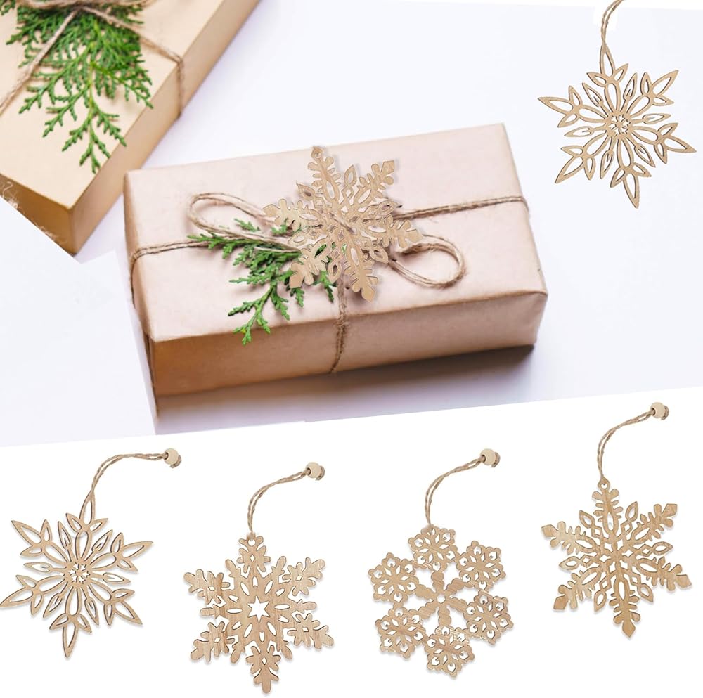زينة عيد الميلاد الخشبية: رقاقات الثلج الخشبية الريفية مصنوعة بشكل جيد، بدون نتوءات، خفيفة الوزن، تم أخذ قطع غير مكتملة من ندفة الثلج كزينة رائعة لشجرة عيد الميلاد DIY للحرف اليدوية