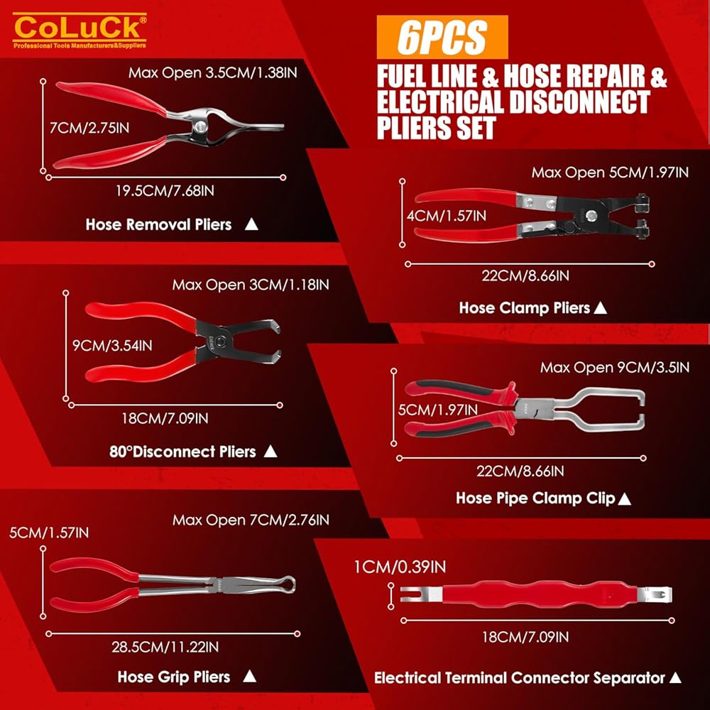فاصل موصل كهربائي وكماشة فصل منحنية بزاوية 80 درجة - يمكن لمزيل الموصل الكهربائي فصل الموصلات بشكل أسهل وأسرع دون التسبب في ضرر. إذا كنت قد استخدمت أدوات أخرى للتعامل مع المقابس الصلبة القديمة من قبل، فإن كماشة فصل 80 درجة هذه ستسمح لك بالتجربة احترافها. يفصل خط الوقود وتركيبات خط EVAP باستخدام الألسنة التي يجب الضغط عليها لفك الارتباط. تعتبر الفكوك المنحنية أكثر ملاءمة للعمل في المساحات الضيقة كما يمكن أن تحمي كماشة خط الوقود هذه أيضًا يديك من الإصابة.