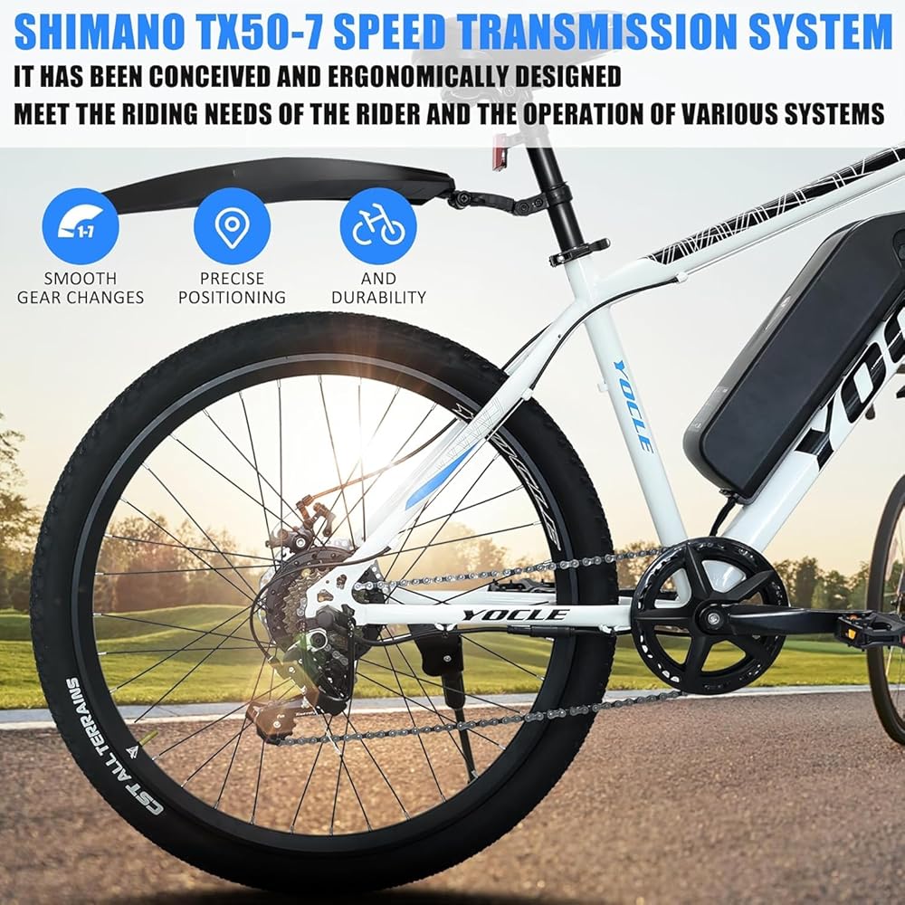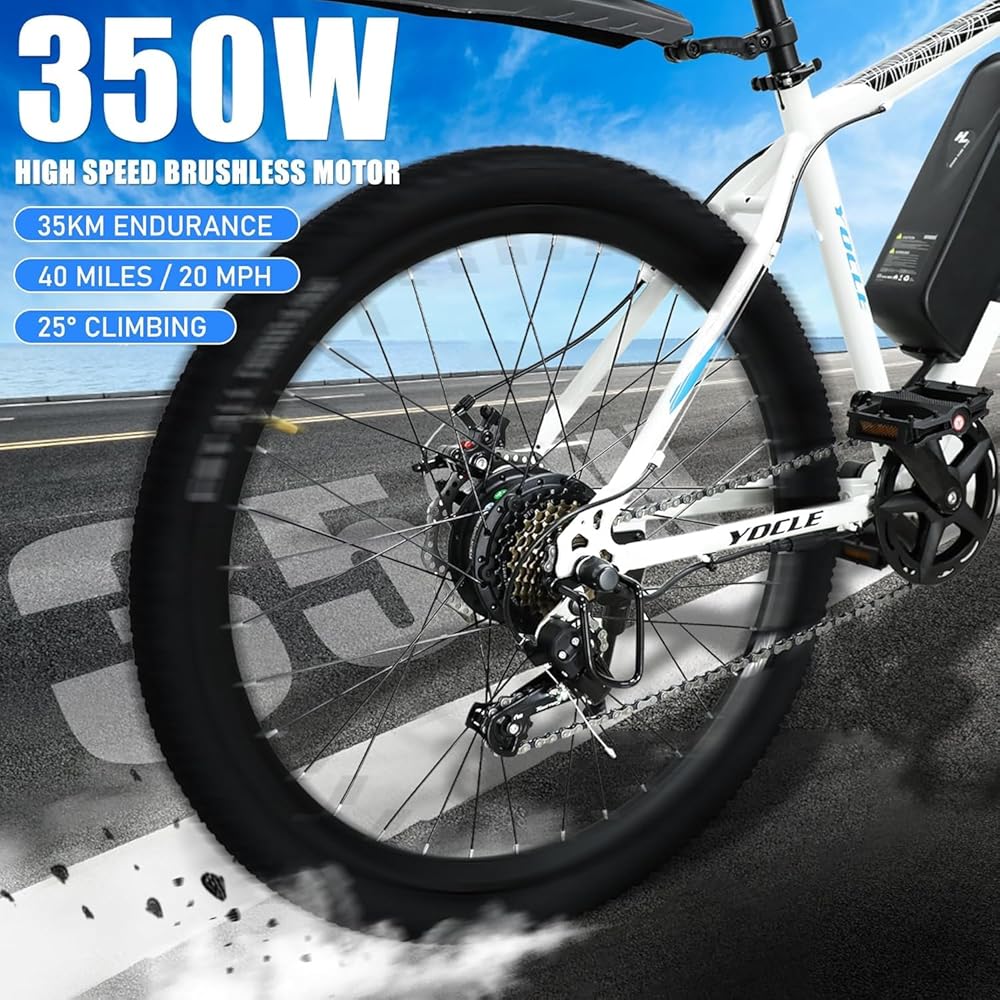 دراجة كهربائية YOCLE للبالغين مع بطارية قابلة للإزالة بقدرة 288 وات 36 فولت 8 أمبير في الساعة، 40 ميلًا و20 ميلاً في الساعة مع محرك بدون فرشاة 350 وات، دراجة كهربائية بإطار سميك 26 بوصة خفيفة الوزن، 7 سرعات، فرامل قرصية مزدوجة