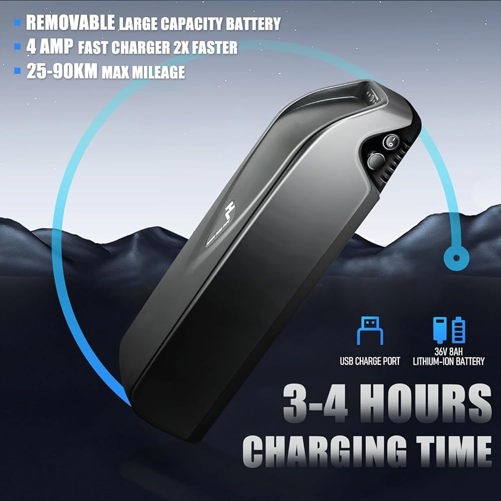 • 🚴【Detachable Large Battery】The electric bike is equipped with a 288Wh 36V 8AH lithium battery with a range of 25-40 miles per charge of 5-6 hours, which can meet the needs of traveling or daily commuting. The removable battery makes charging more convenient, you can choose to charge on the frame or under the frame, whether you are at home or in the office.