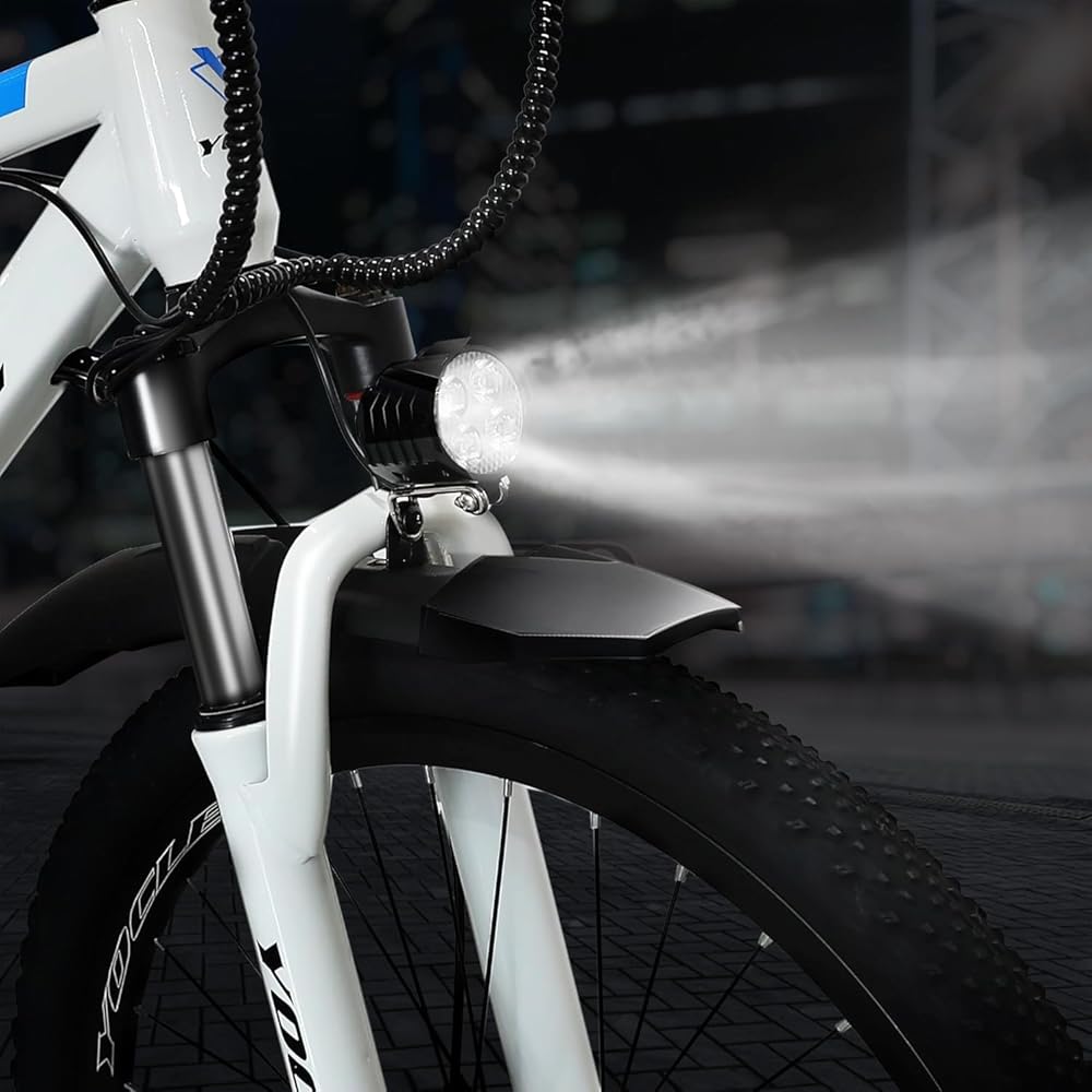 • 🚴【4 Working Modes】YOCLES electric mountain bike has 4 modes. PAS MODE: As you pedal the bike, the motor assists you with a moderate amount of power. Choose one of the 3 pedal assist modes to suit your needs. PURE ELECTIRC MODE: Twist the throttle for any incremental power you need. PEDAL MODE: Pedal normally as you would on any bike. ASSIST MODE: The e-bike will travel at 4.5~7.5km/h depending on the road conditions. It will help you push the electric bike when you go uphill.