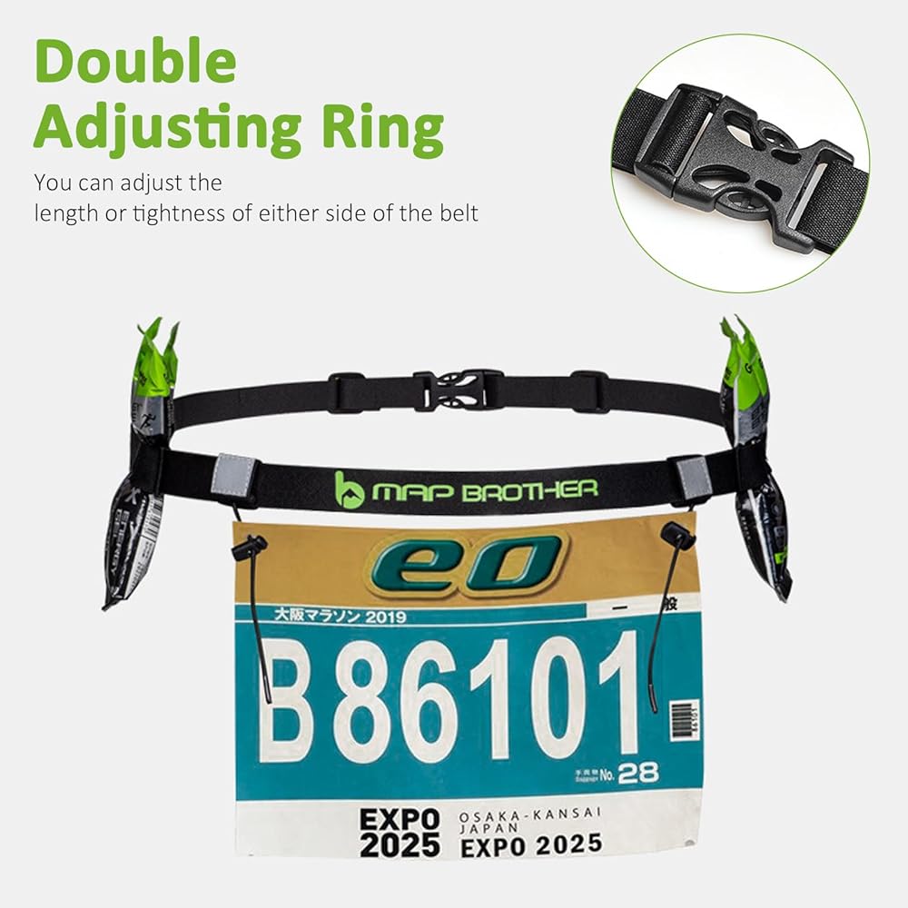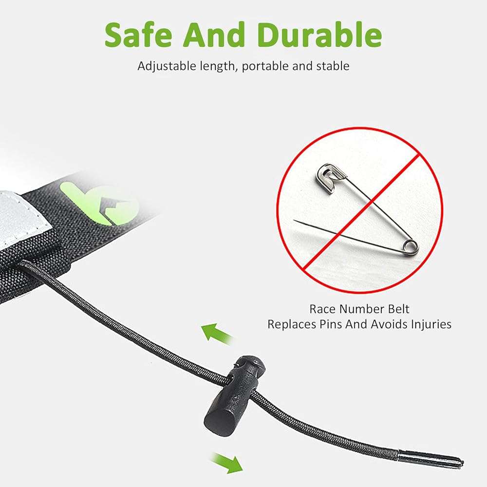 حامل رقم السباق: يأتي حامل مريلة حزام الجري هذا مزودًا بقفلين من الدانتيل مناسبين للضغط ومزلقات قابلة للتعديل بالكامل لحمل رقم السباق الخاص بك للحصول على ملاءمة مثالية ومريحة في كل مرة. مصممة لتتماشى مع قياسات فتحة المريلة الأكثر شيوعًا. ليست هناك حاجة لتثبيت الأرقام من خلال ملابسك بعد الآن.