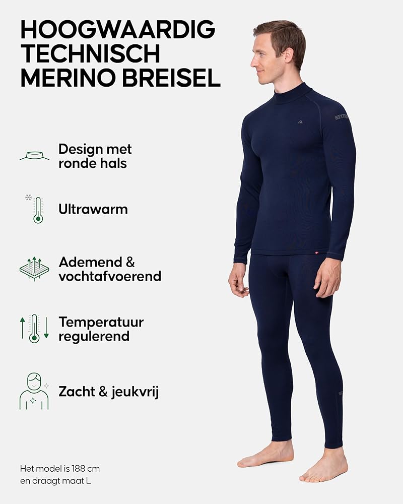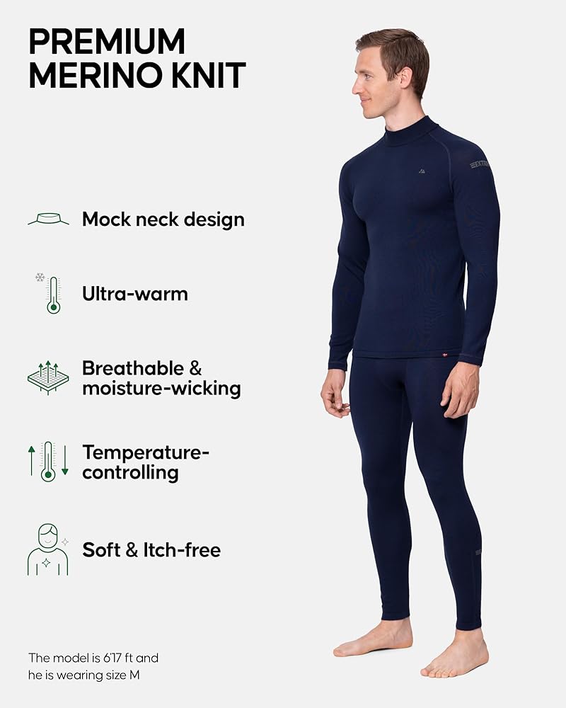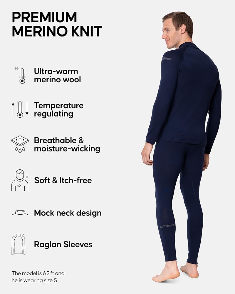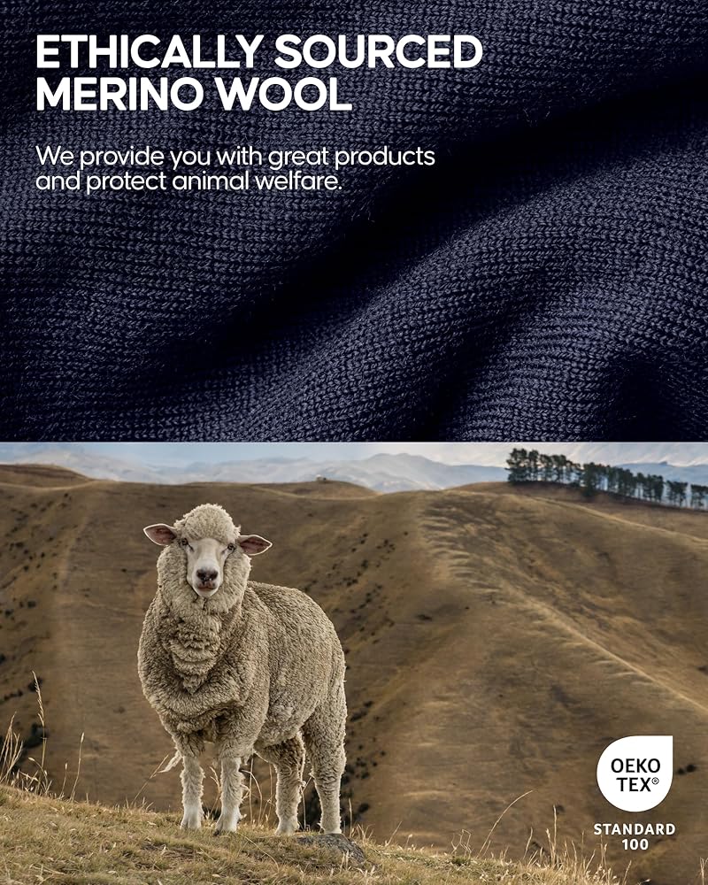 صوف ميرينو الفاخر: مزيج من صوف ميرينو الفاخر بدون حجم كبير للحصول على دفء فائق. طبقات مسطحة ولا توجد علامات لتجنب التهيج. التحكم في درجة الحرارة وامتصاص الرطوبة لتجنب الرائحة ويبقيك منتعشًا وجافًا