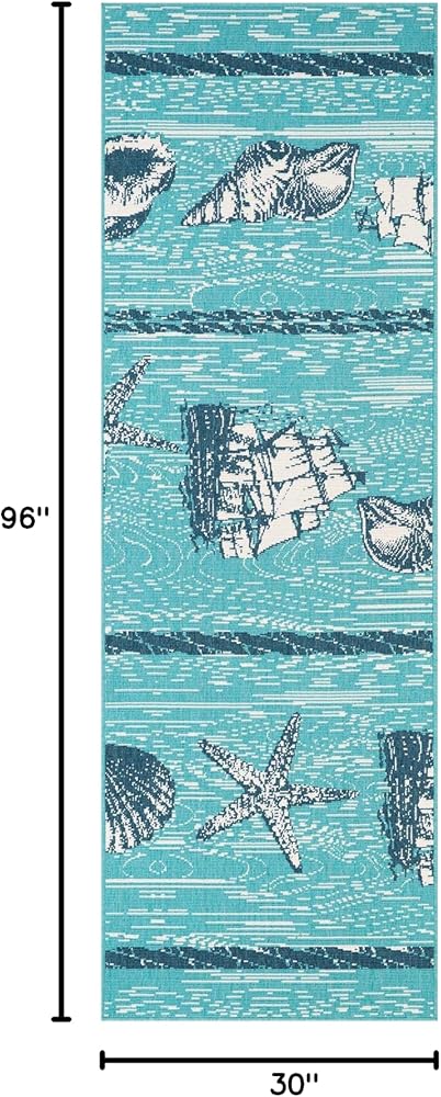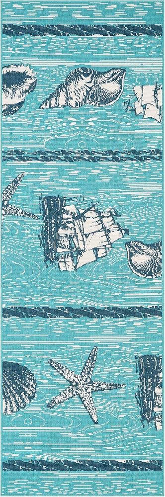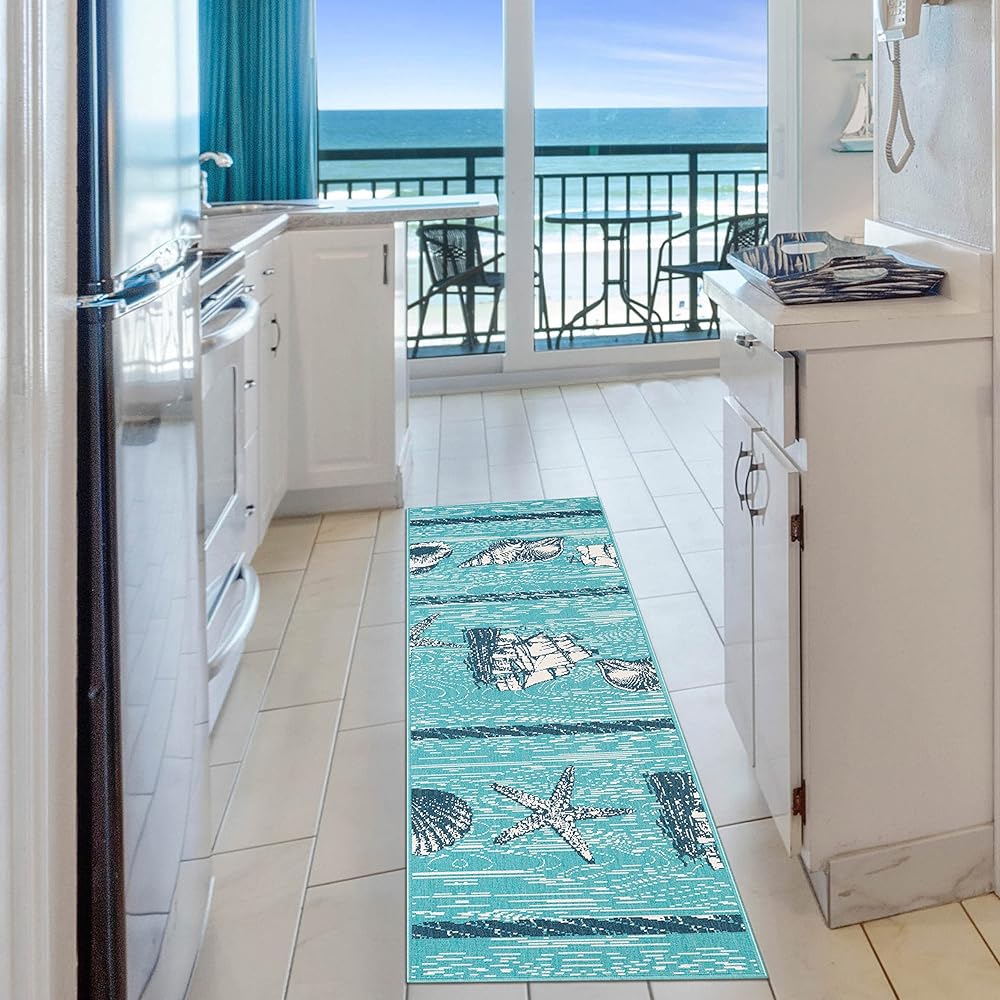 GORGEOUS DESIGN: Available in a beautiful Teal color option with seashells and starfish, this rug is Comfortable in the foyer, bedroom, living room, office, or in the kitchen