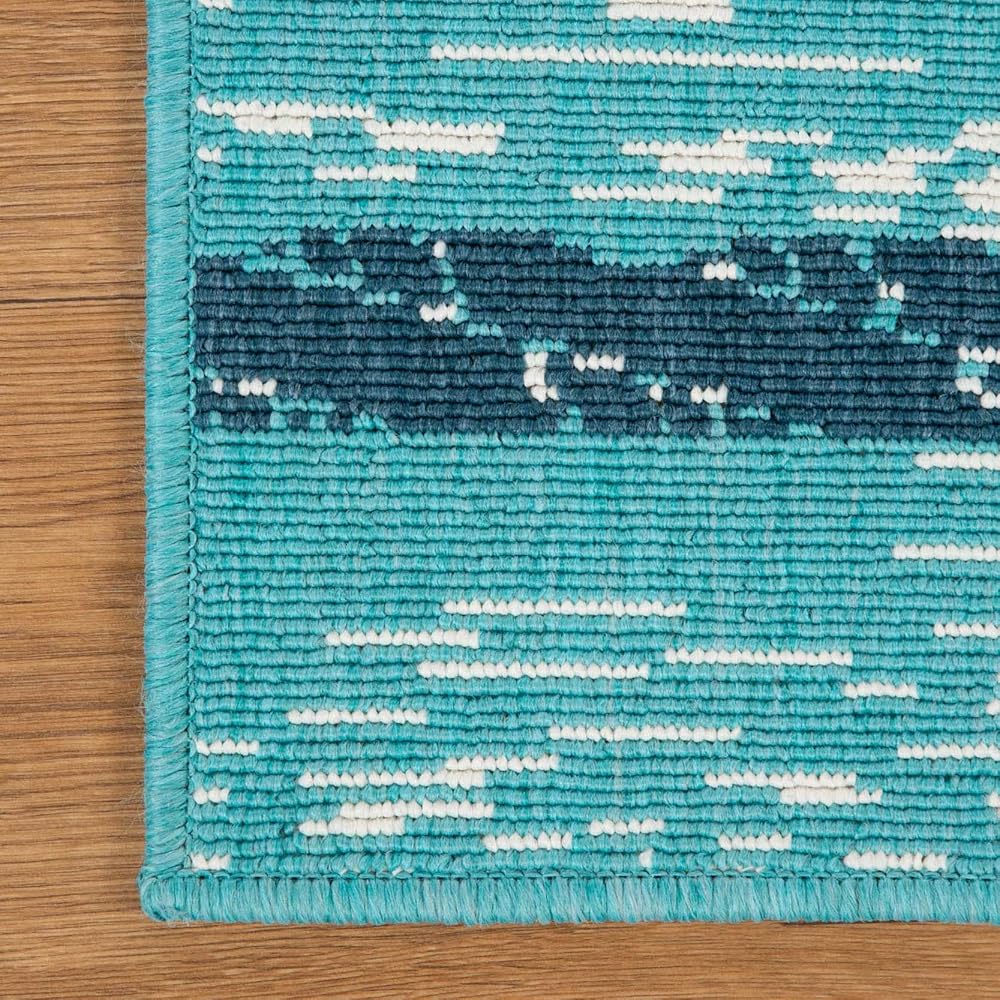 عداء داخلي وخارجي متفوق، ديكور أرضية استوائية ساحلية للفناء، بجانب حمام السباحة، المطبخ، غرفة المعيشة، غرفة النوم، دعامة من الجوت، نجم البحر، مجموعة كاليهيواي، 2' 7'' x 8'، أزرق-أخضر/كريمي