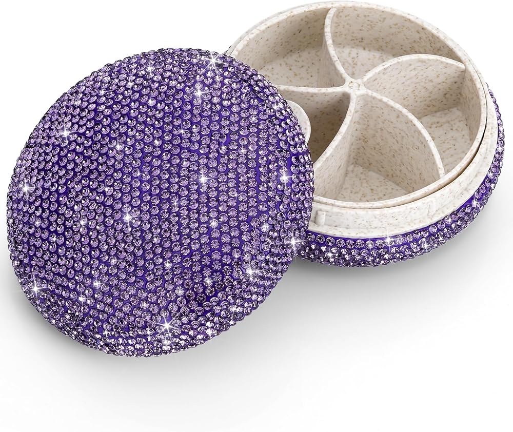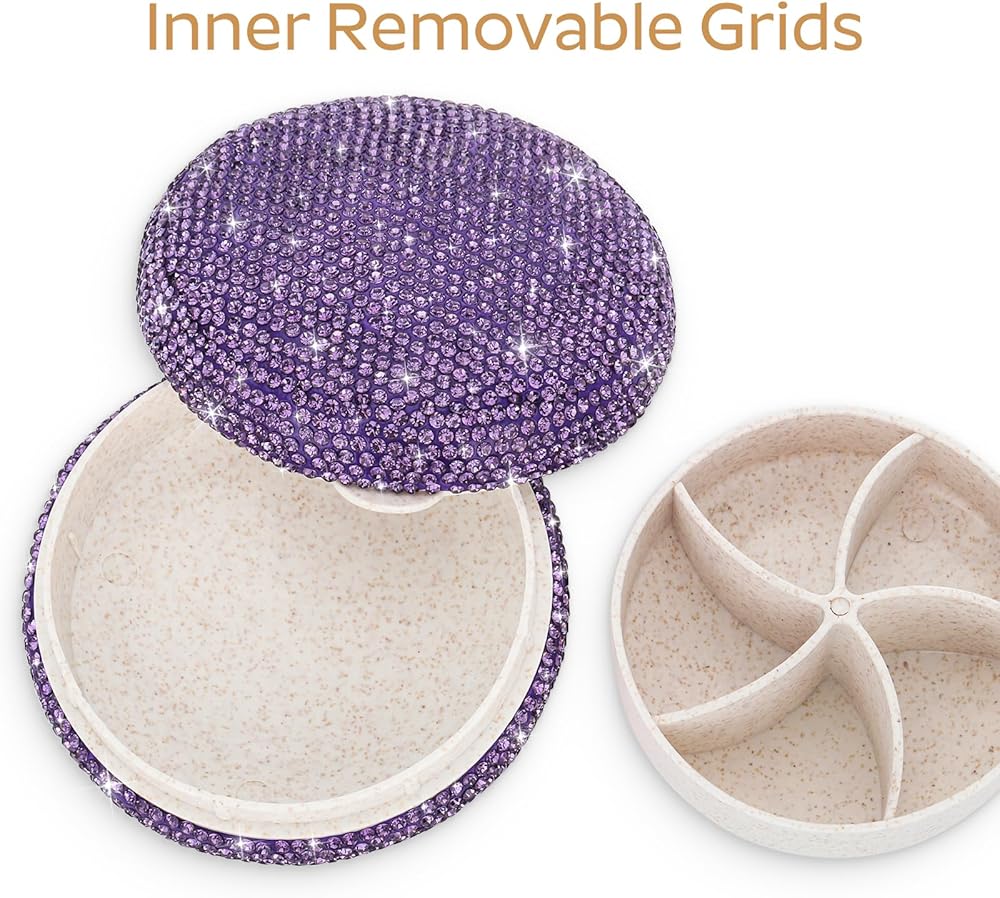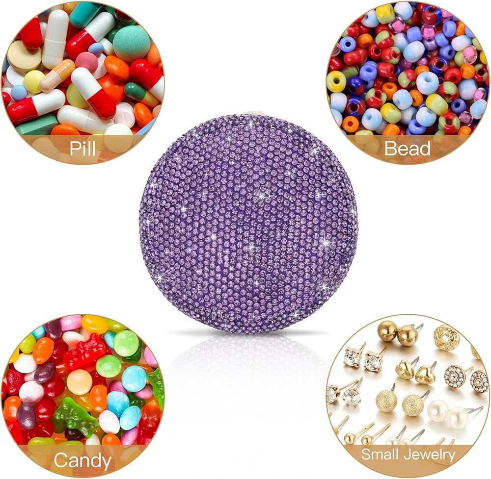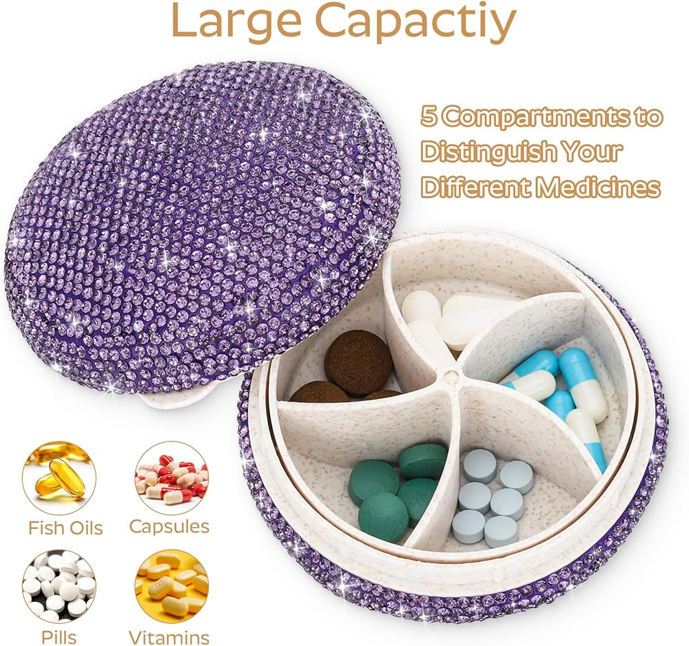 ✧تألق: صندوق حبوب الدواء الكريستالي اللامع لطيف جدًا. تصميم مرصع بالألماس يجعل صندوق حبوب الدواء الخاص بك فريدًا ومتألقًا. هذه هدية رائعة لأولئك الذين يحتاجون إلى تناول حبوب الدواء بانتظام أو الخروج لحمل حبوب الدواء.