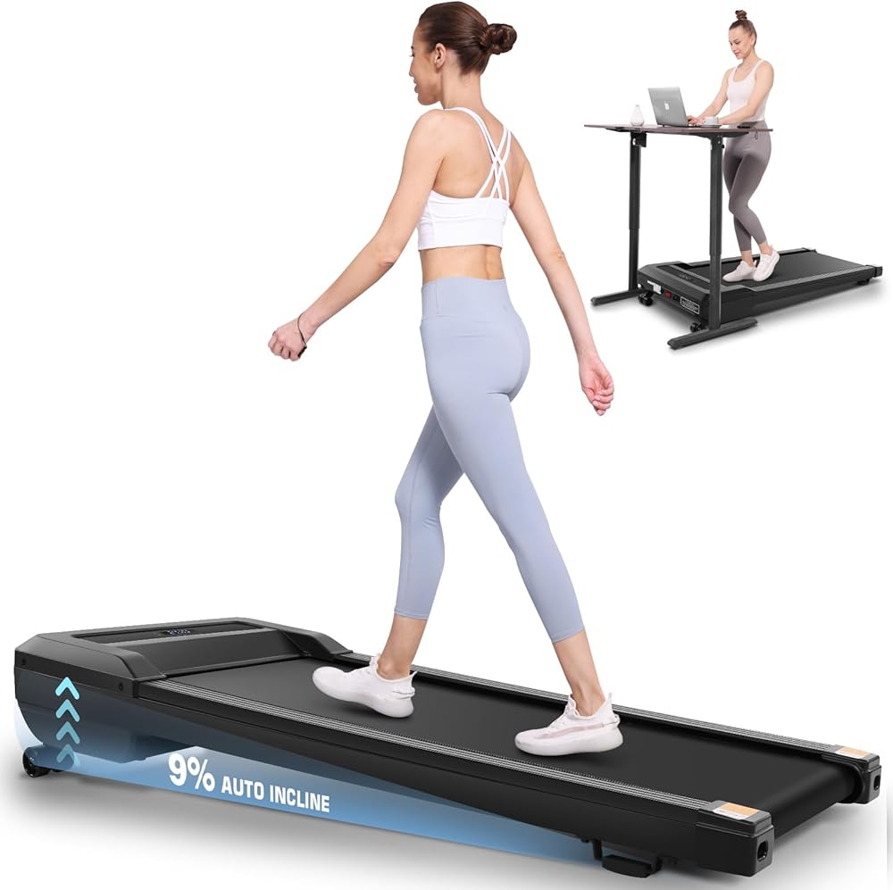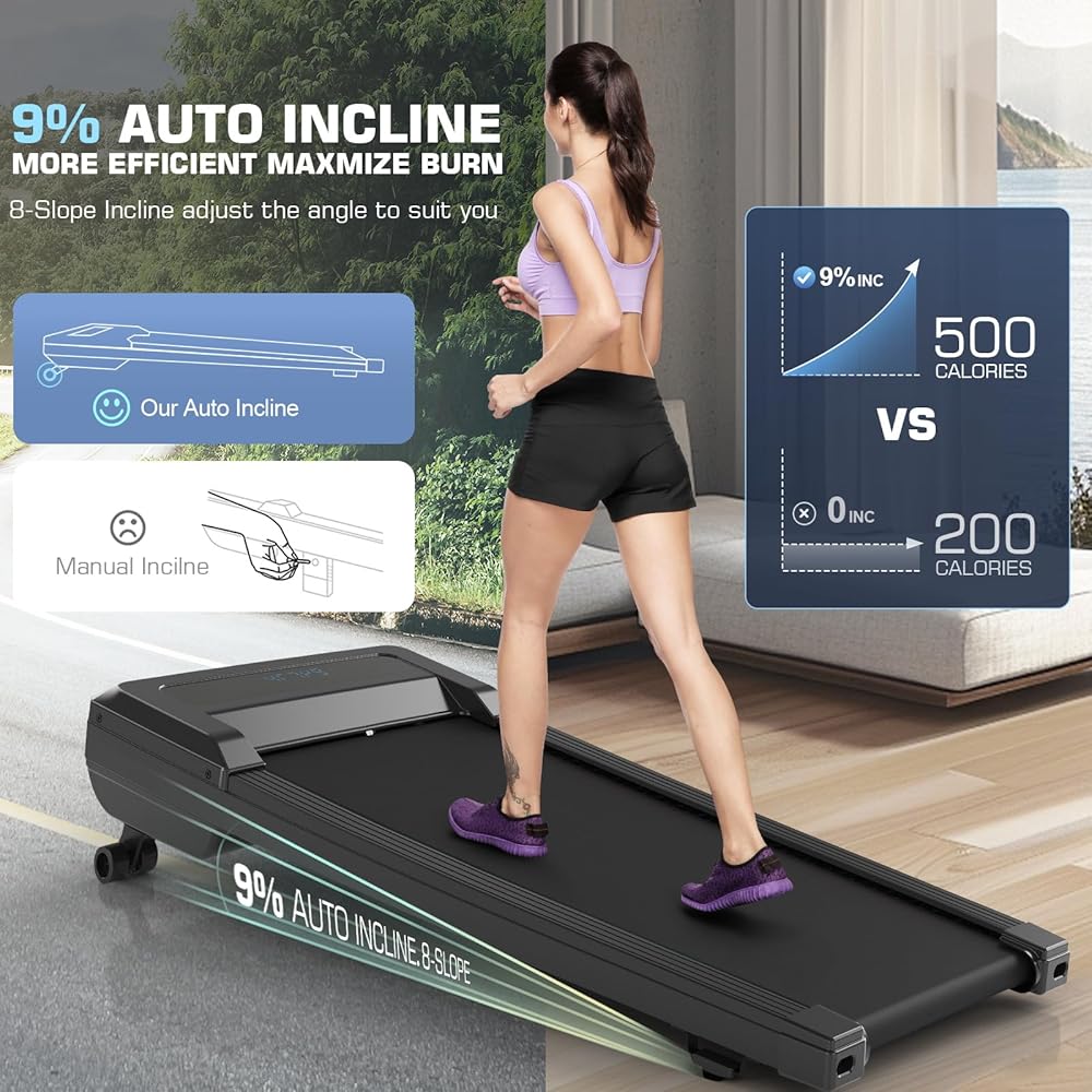 Walking Pad with Auto Incline, 2.5HP Under Desk Tredamill, 220 LBS Weight Capacity for Home Office, LCD Display(Black)