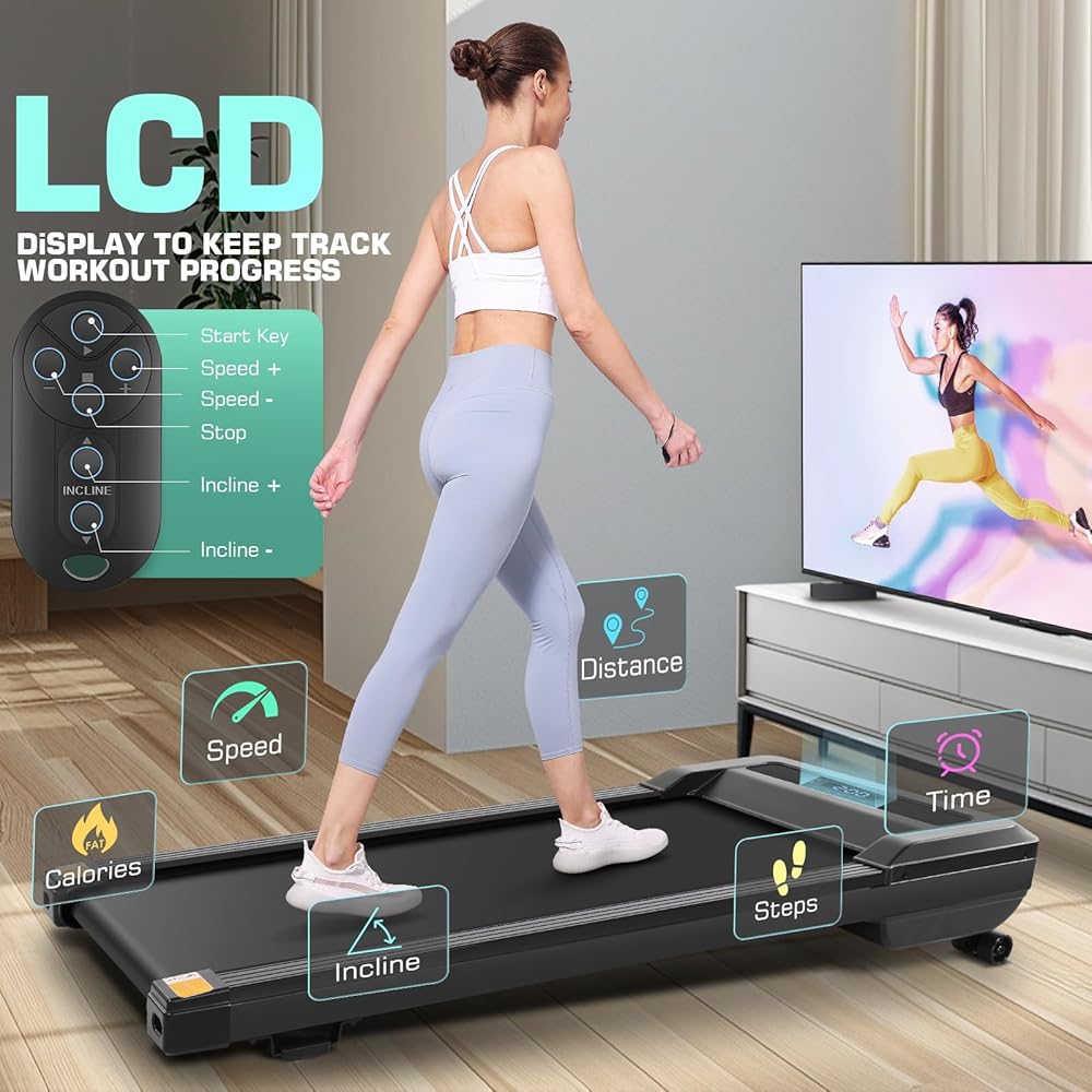 【Muti-function LED Display】The LED display on the under desk treadmill clearly shows Incline, time, calories, speed and distance, keeping your movement data at a glance and clearly to monitor your progress in real-time.