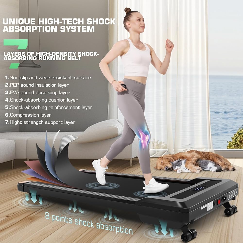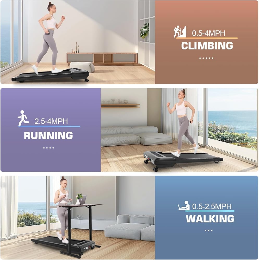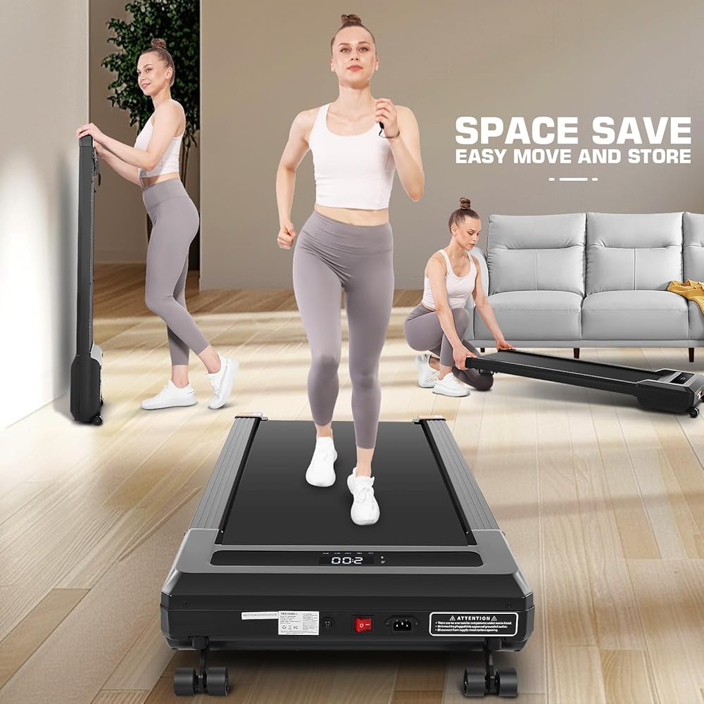 【Installation-free and Easy to Move】To provide users with a better experience, our walking treadmill under desk products have been assembled when they arrive. They can be used directly after disassembly. Compact treadmill is designed to be sturdy and slim, and it has a compact size, so that the flat treadmill can be used in a small space.The wheels on the front help you move anywhere with ease, and ultra-thin size saves your limited space.