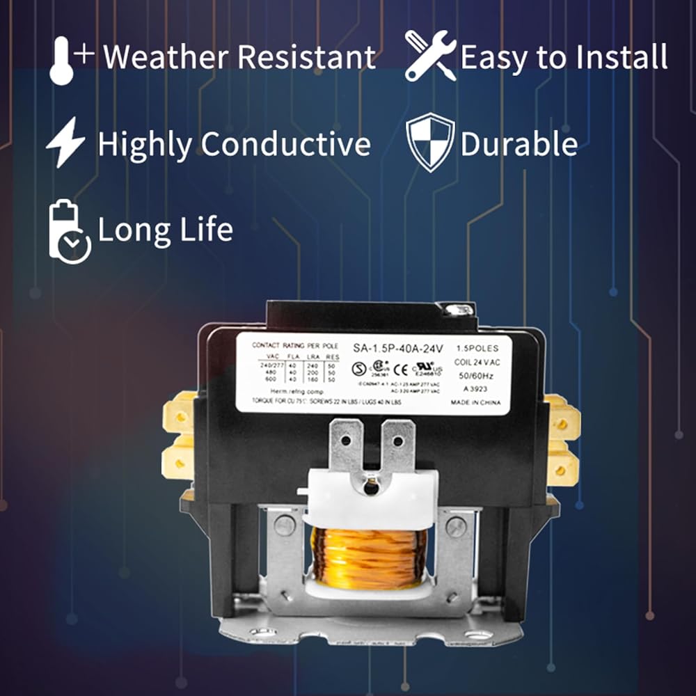 موصل HVAC عالي الأداء: مصمم للأجهزة عالية الطاقة مثل مكيفات الهواء والضواغط والمصاعد والمضخات الحرارية، مما يضمن التشغيل السلس. تظل موثوقيتها غير متأثرة بتغيرات درجات الحرارة، حيث يمكنك التحكم بسهولة في وظائف تشغيل/إيقاف تشغيل الجهاز لمساعدتك على التخلص من مشكلات الضوضاء المزعجة.