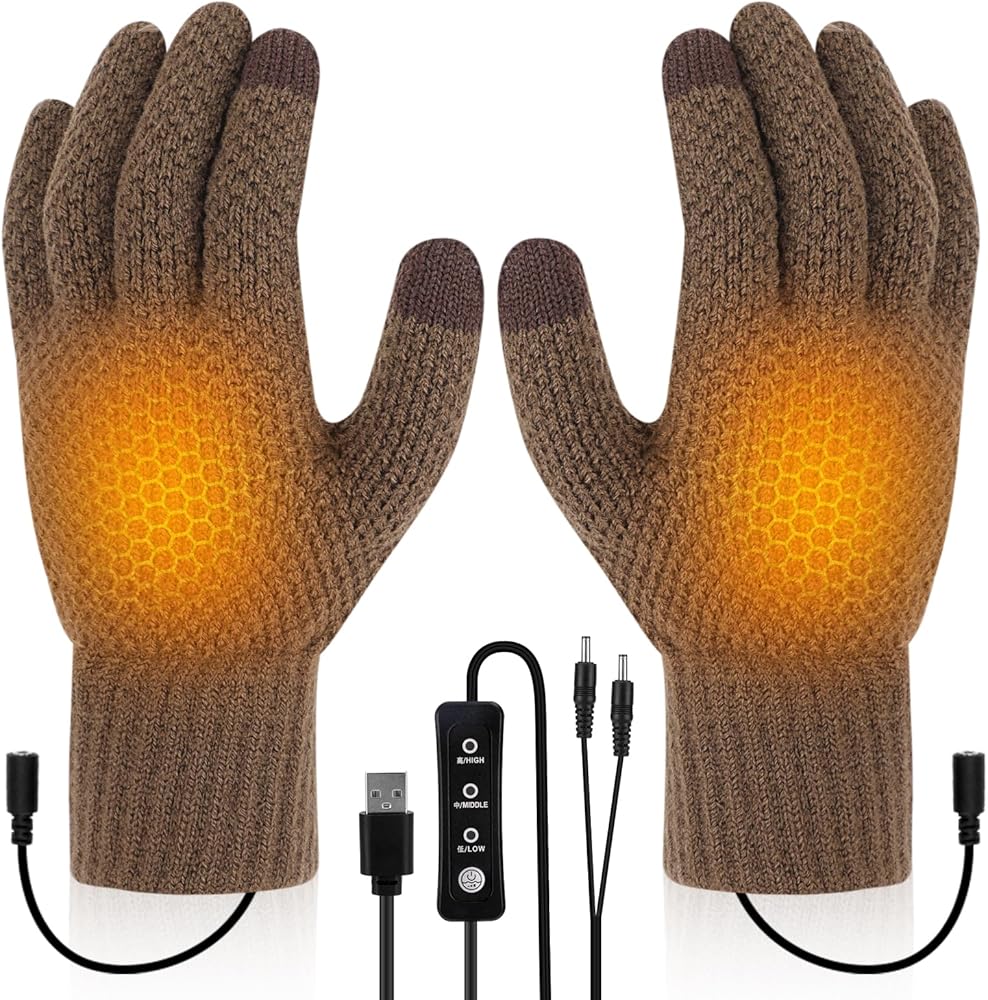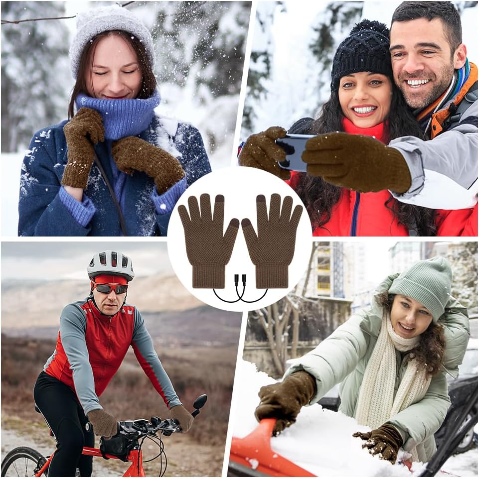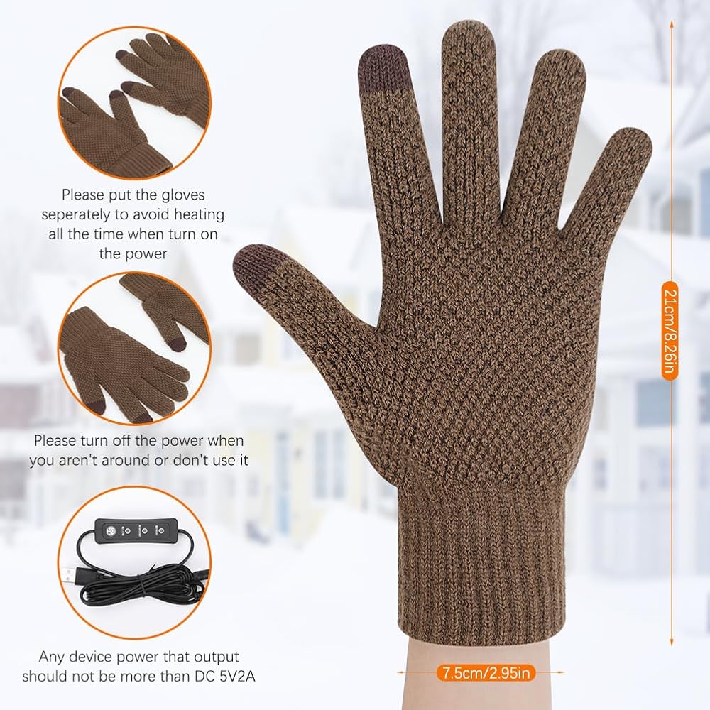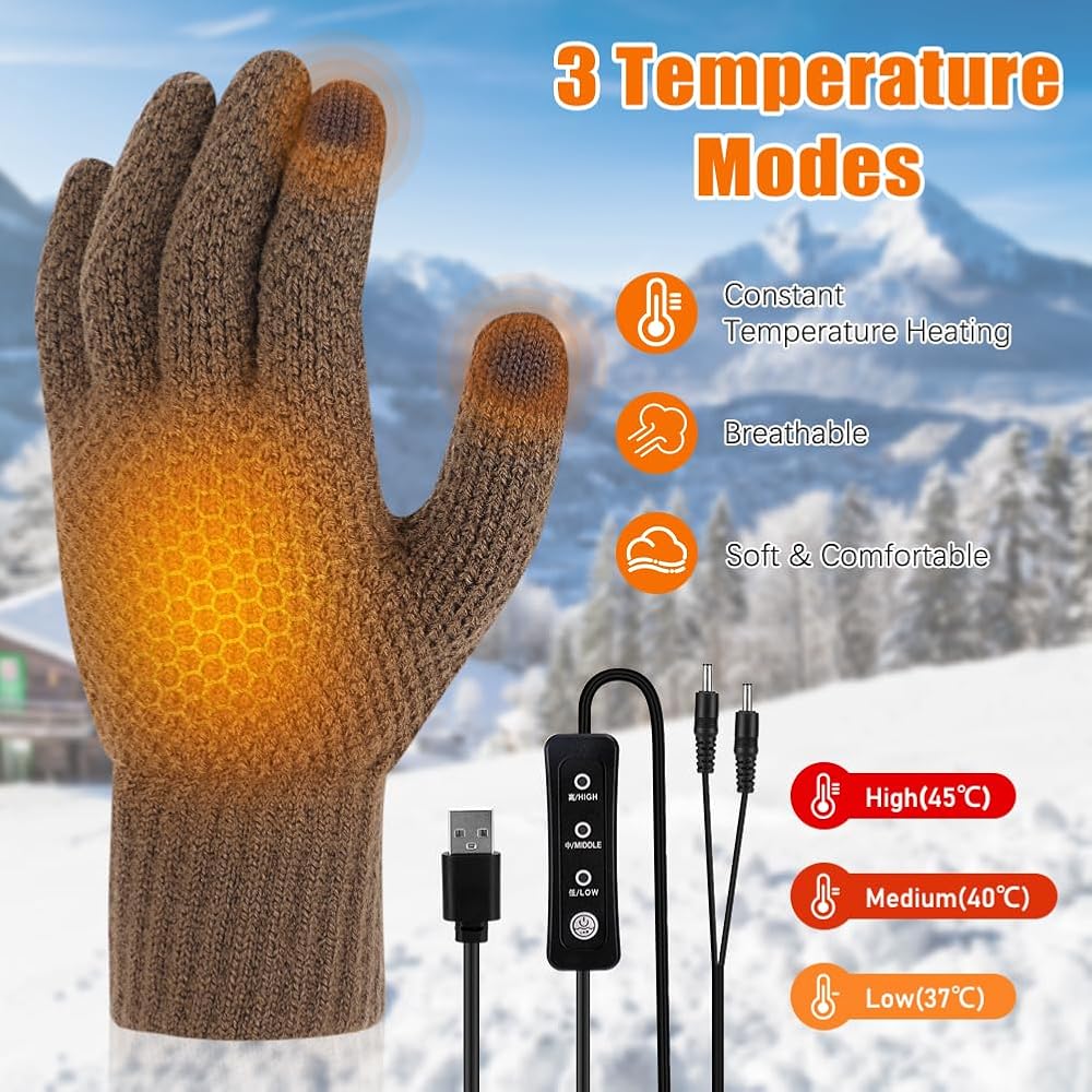 قفازات USB ساخنة للرجال والنساء، قفازات تدفئة حياكة ناعمة مع 3 درجات حرارة قابلة للتعديل، نصف تسخين كامل لليدين، قفازات شتوية كهربائية قابلة للغسل وقفازات كتابة الكمبيوتر المحمول