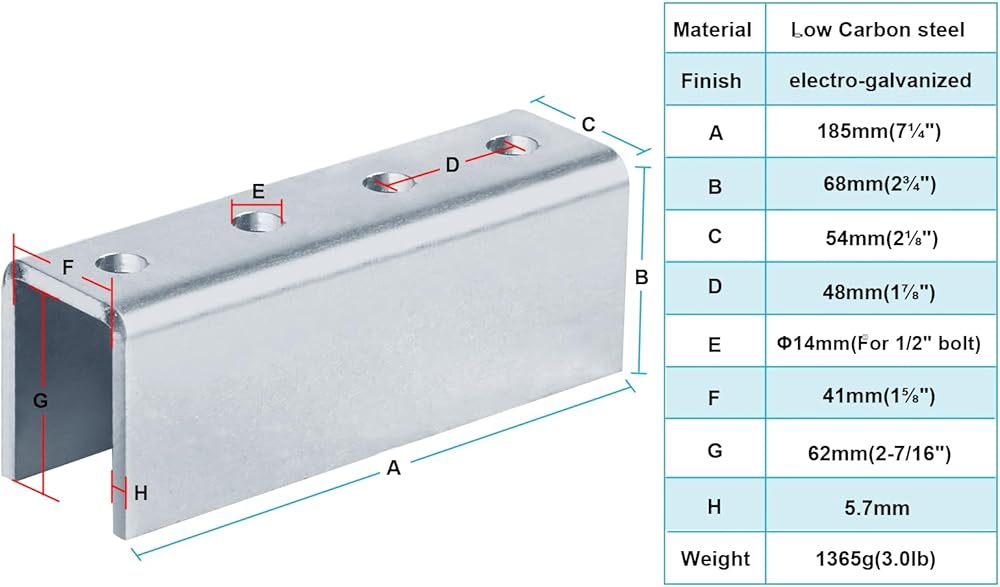 2 قطعة 4 فتحات على شكل حرف U موصل تبختر، 4 قياسات معدنية لصق تبختر قناة نهاية إلى نهاية دعم النجار مناسب لـ 1/2 بوصة مسمار في 1-5/8 بوصة قناة تبختر، مجلفن بالكهرباء