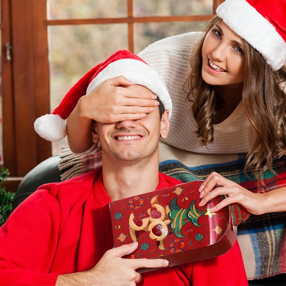• نافذة العرض: مع نافذة شفافة في الأمام، تسمح لك صناديق بسكويت عيد الميلاد الخاصة بنا بعرض الحلويات اللذيذة بفخر دون فتح الصندوق. اصطحبها إلى حفلات عيد الميلاد أو التجمعات لإبهار ضيوفك.