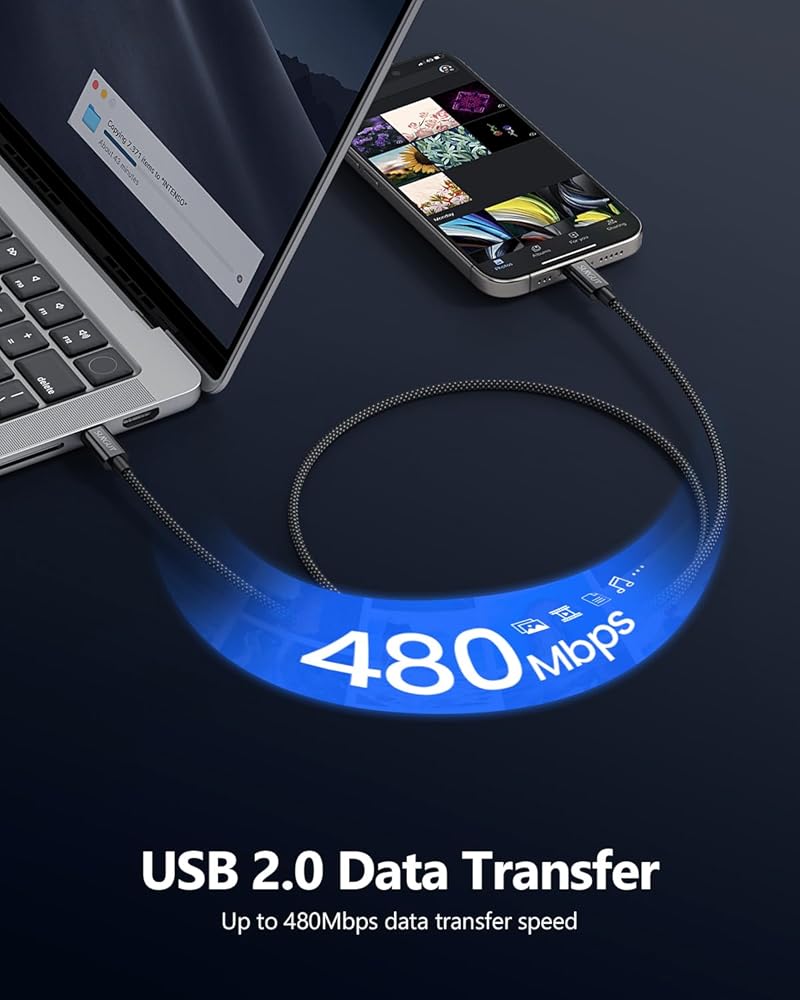 • 【توافق عالمي】متوافق مع معظم أجهزة USB من النوع C بما في ذلك الهواتف والأجهزة اللوحية وأجهزة الكمبيوتر المحمولة، مثل iPhone 16/16 Pro/16 Plus/16 Pro Max/15/15 Plus/ 15 Pro/ 15 Pro Max، وSamsung Galaxy S24/S23/S22/S21، MacBook Air/Pro 13 بوصة، iPad Mini 6، iPad Pro، iPad Air 2020. ملاحظة: كابل USB C هذا لا يدعم مراقبة وإخراج الفيديو.