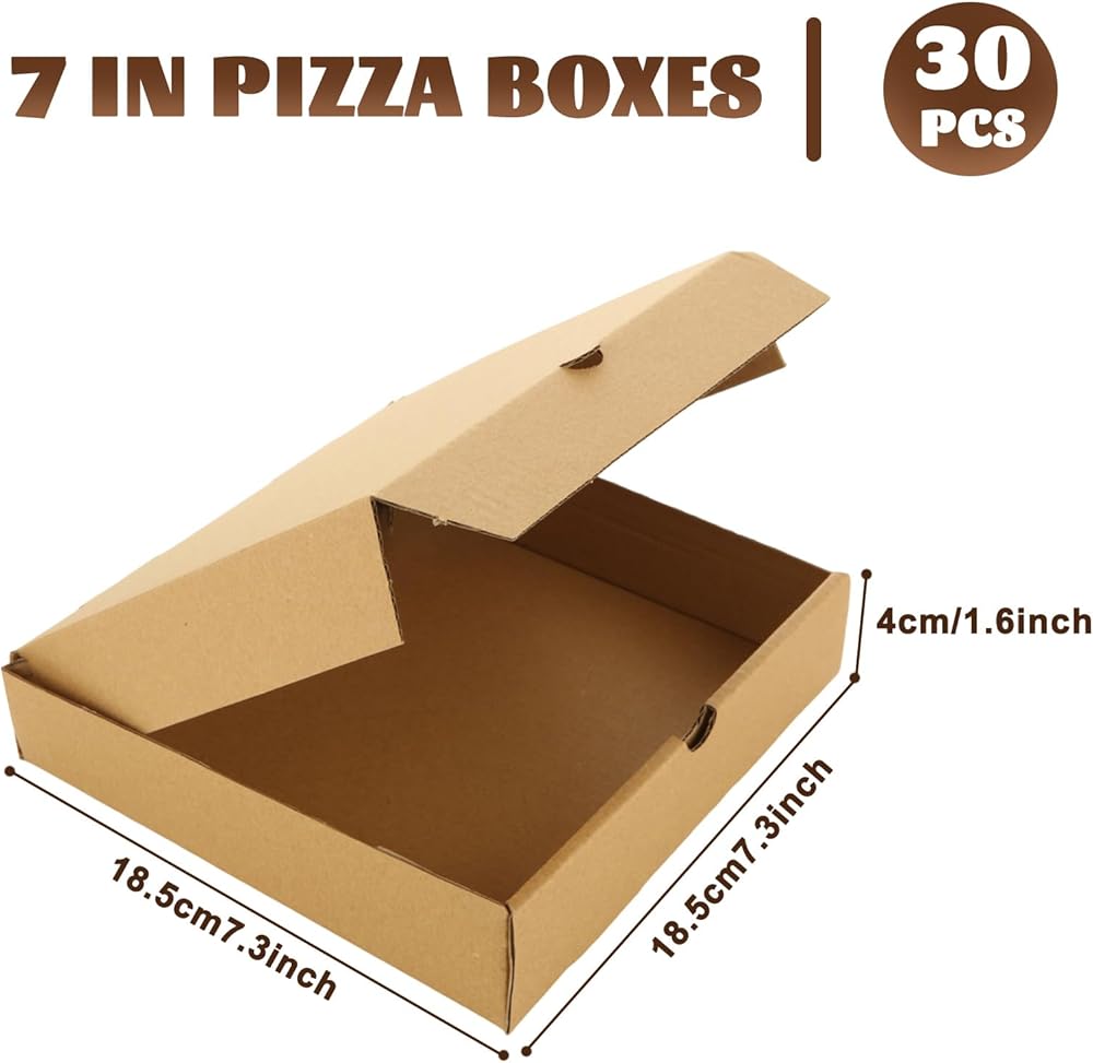 SHUESS 30 عبوة من علب البيتزا الصغيرة المموجة كرافت مقاس 7 بوصات علب بيتزا صغيرة، أخرج صناديق تعبئة البيتزا الصغيرة، صناديق الوجبات الجاهزة للبيتزا والكعك والبسكويت والطعام