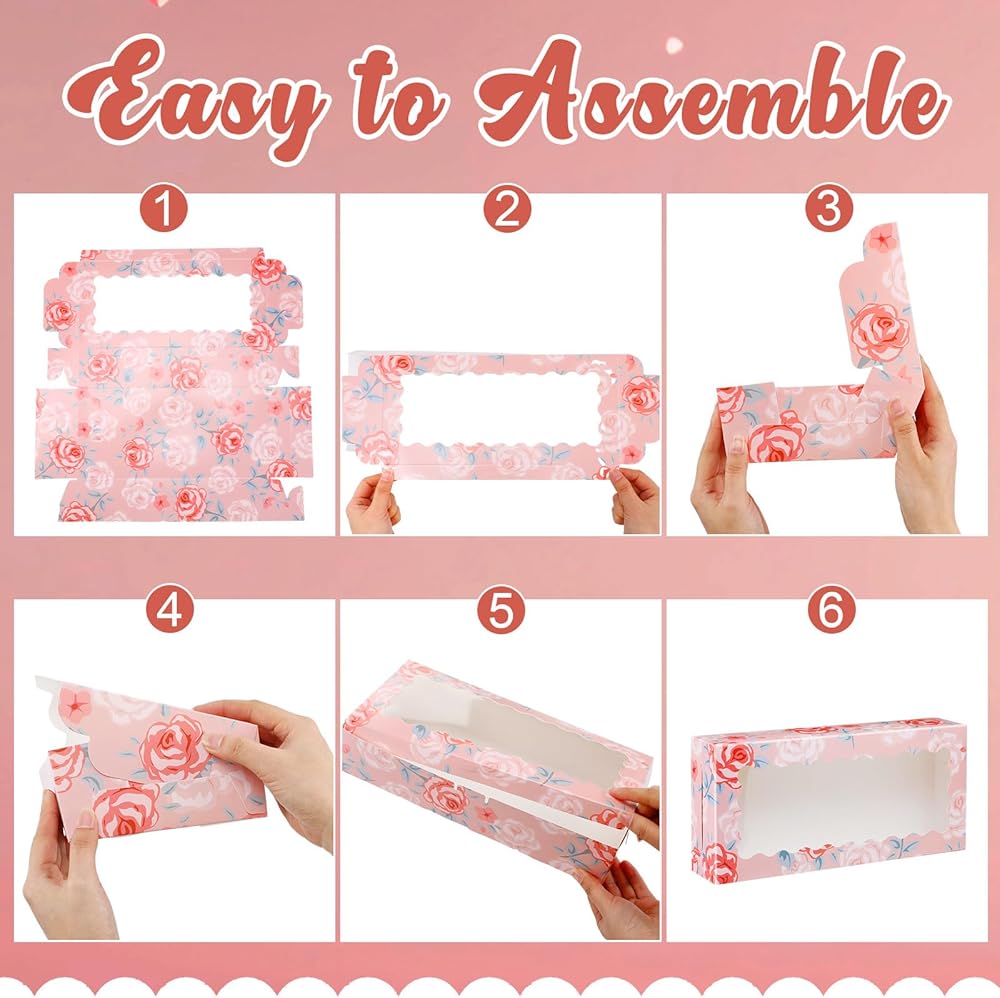 Our Mother's Day bakery boxes are to be shipped flat to save room, but they can be assembled quickly by folding the edges.