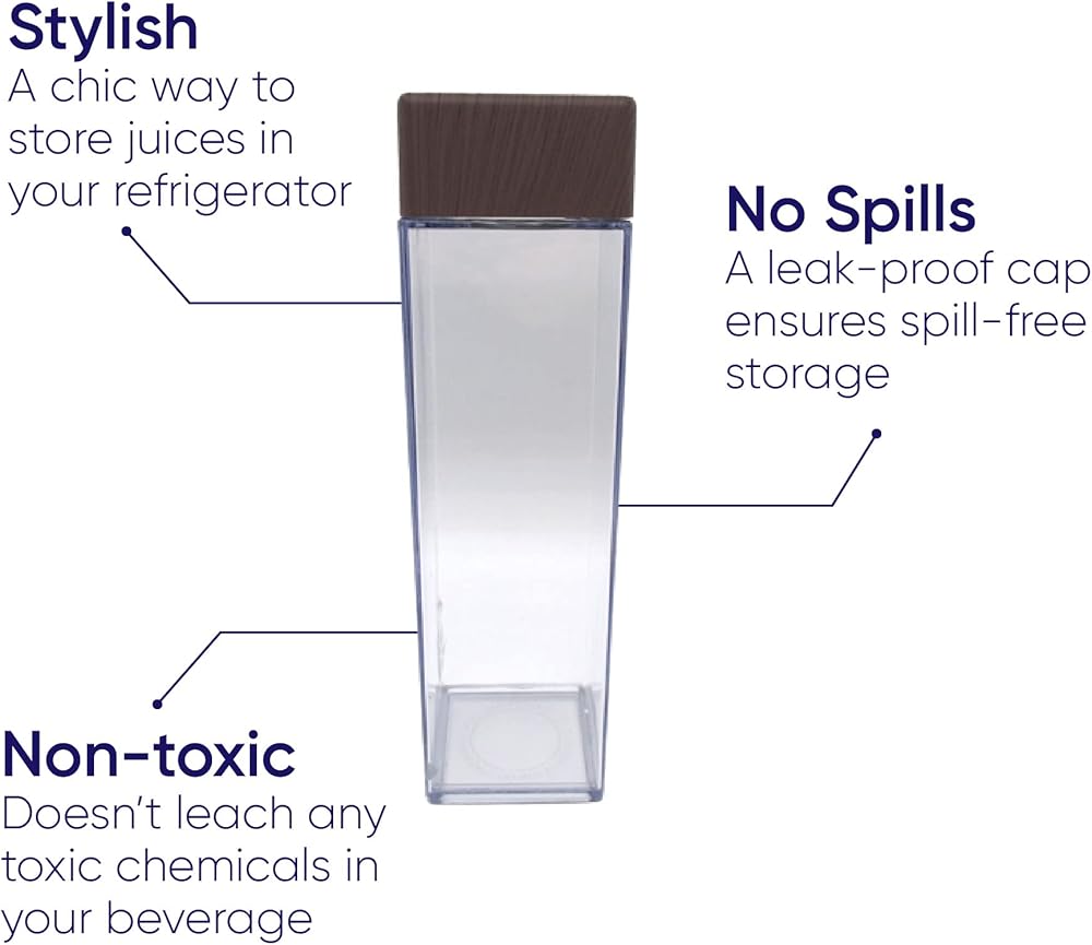 مواد غير سامة: مصنوعة من مواد عالية الجودة صالحة للطعام، زجاجات العصير الخاصة بنا خالية من المواد الكيميائية الضارة التي يمكن أن تتسرب إلى مشروبك. يمكنك أن تثق في أن مشروبك سيكون آمنًا وصحيًا للاستهلاك.