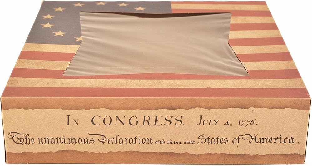 Bring a little bit of history to your next patriotic celebration with Southern Champion Tray's new Flag Design box, which displays a beautiful vintage flag design. This box is a nice addition to any Memorial Day pool party, Fourth of July celebration, Labor Day cookout, Veteran's Day parade, or President's Day party. These boxes are recyclable where facilities exist.