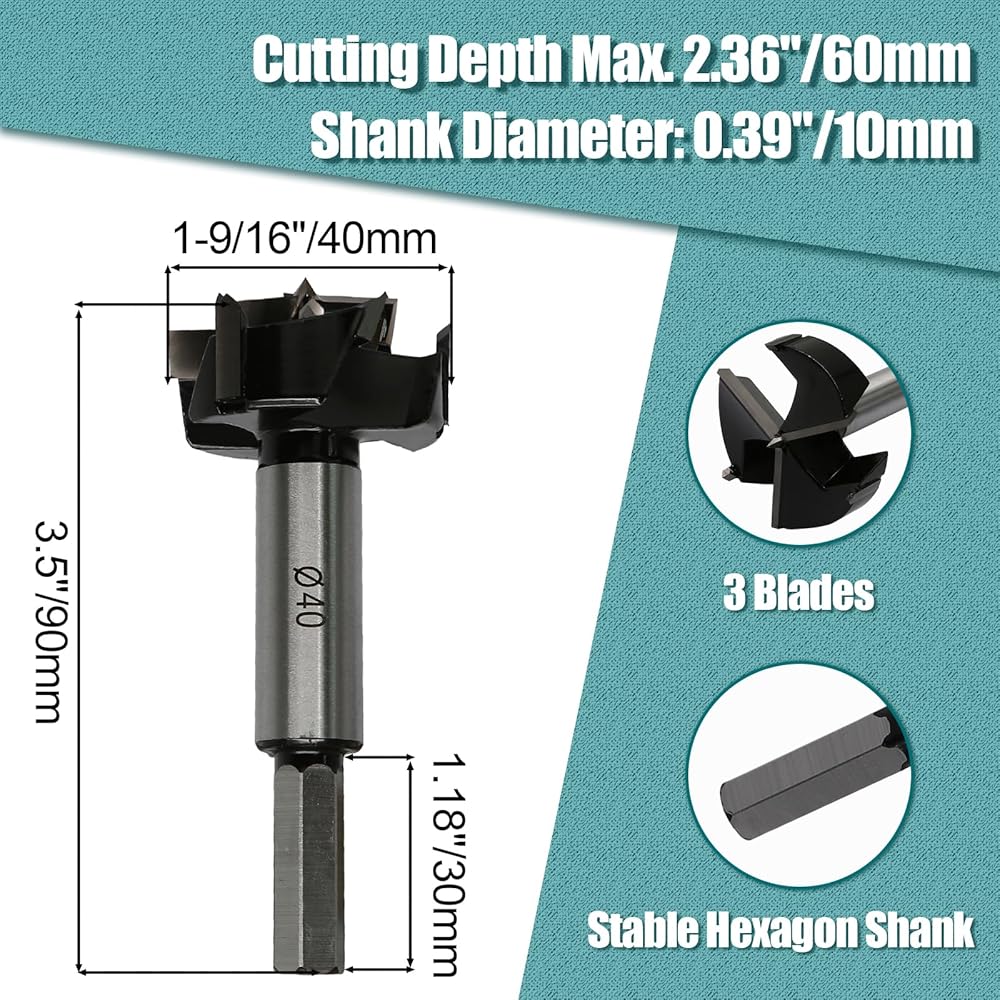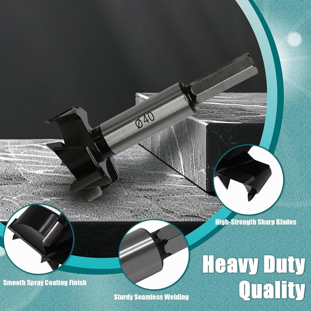 High-Performance Materials: Forstner drill bits is made of carbide tipped blades and 45 steel shank, with hardness (up to 92HRC), toughness, cutting strength and wear resistance.
