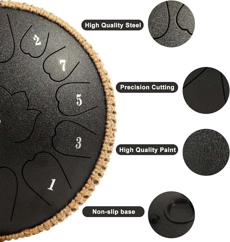 ألسنة فولاذية عالية الجودة: طبول اللسان Wetpuorek مصنوعة من فولاذ صناعي عالي الجودة، مصنوعة يدويًا على يد حرفيين محترفين، مقطوعة بدقة، ومطلية بطلاء مقاوم للصدأ وعديم الرائحة ولا يبهت!