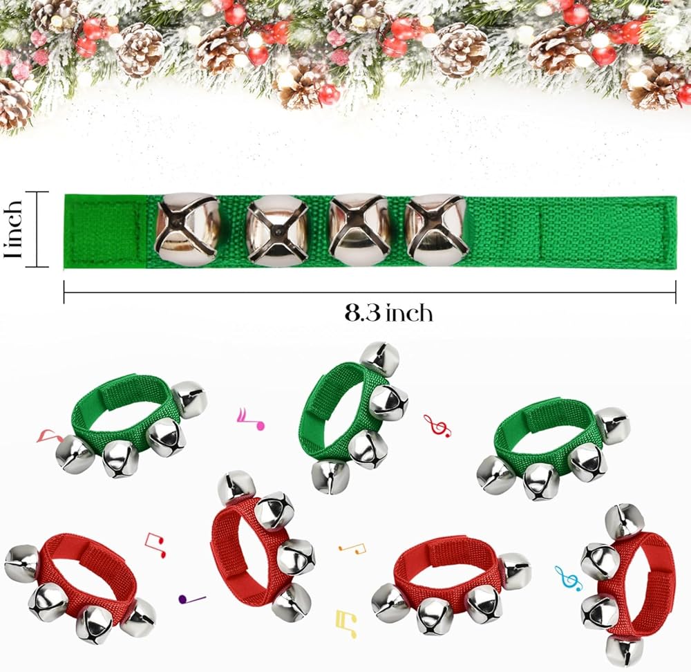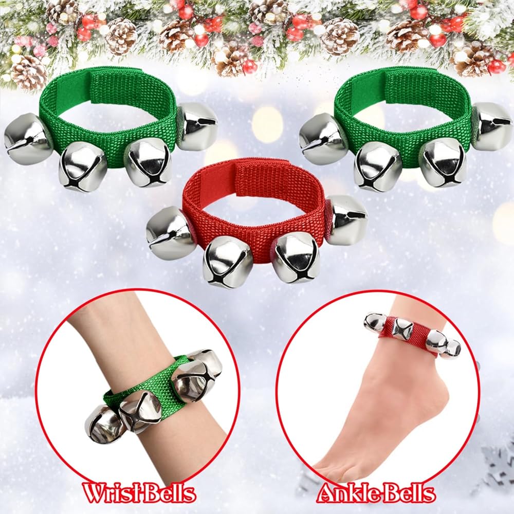 YoleShy 6 PCS Jingle Bells Instrument, Wrist Bells Hand Jingle Bells, Music Bells Instrument Jingle Bell Bracelet, Ankle Bells Percussion Party Favors, Christmas Jingle Bell(Red & Green)
