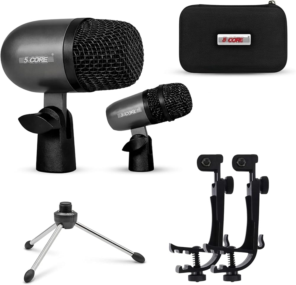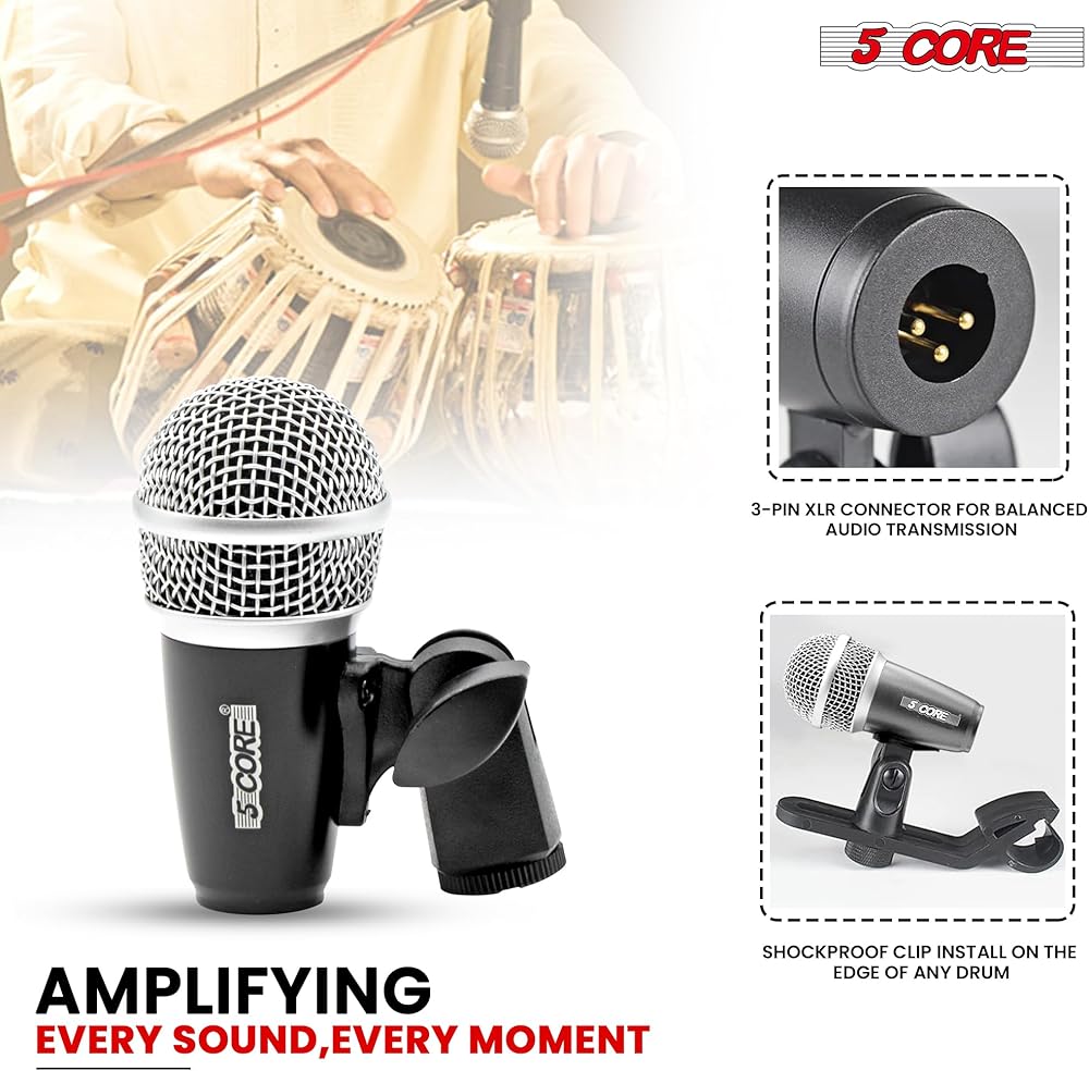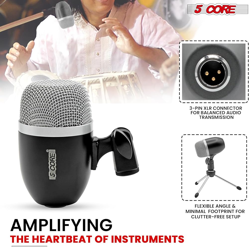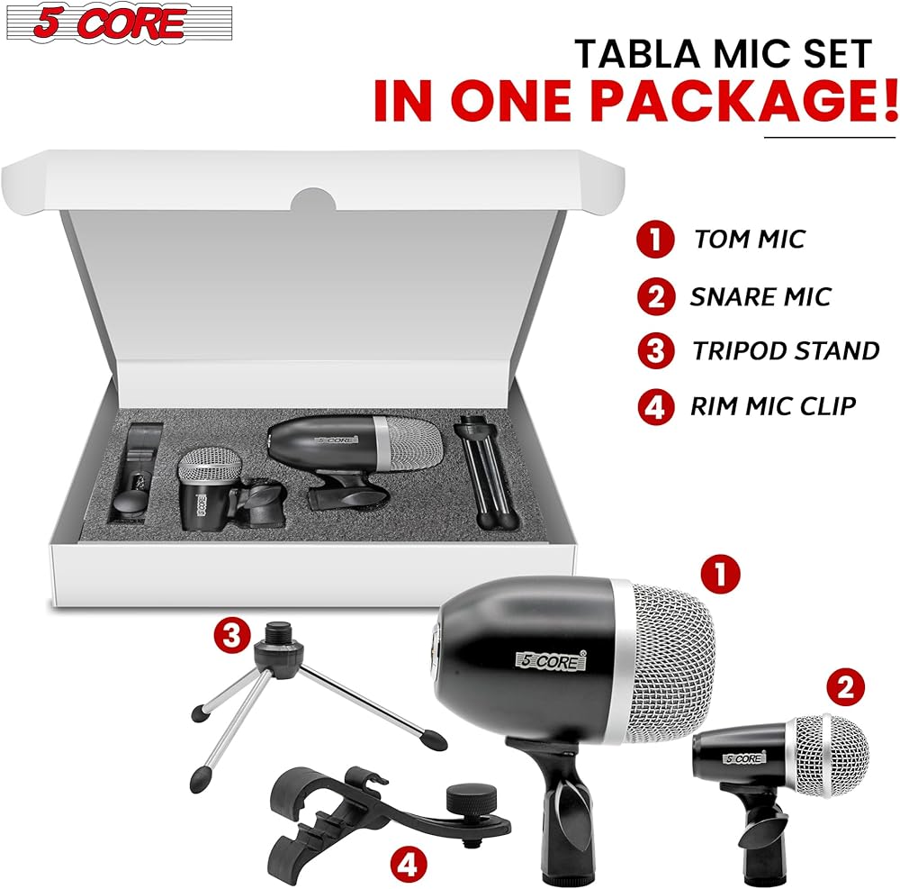 مجموعة ميكروفون طبلة أساسية مكونة من 5 ميكروفونات أحادية الاتجاه، ميكروفون بيان دايان مع اتصال XLR متوازن، حامل ثلاثي الأرجل، متضمن باللون الأسود - ميكروفون تابلا BLK