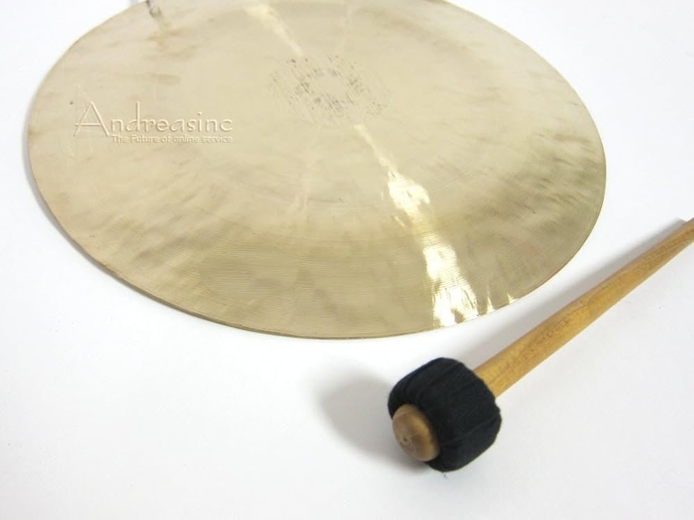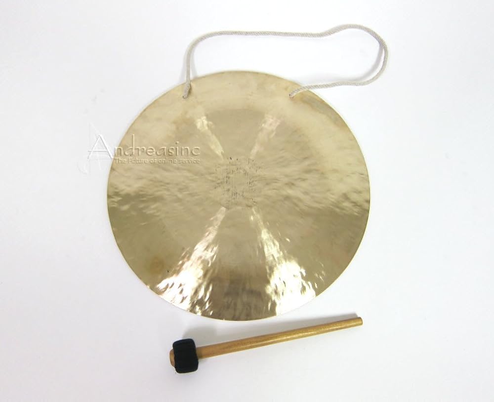Wind gongs are basically a large and very flat bell. When played with a padded mallet they produce a complex wave of musical tones. When struck with a drumstick they sound more like the bells in a large clock. Our wind gongs are made with traditional methods by artisans in China. They are a bronze alloy which is roughly 80% copper and 20% tin. The crafting process is a mixture of hand hammering and working the bronze on a lathe while carefully heating and cooling the metal. The result is a spectacular sounding, very unique musical instrument. Wind gongs are available in a range of sizes, with each size having its own distinct sound. Smaller sizes have a higher pitch and less power while the larger sizes are deeper, richer, and ring with more power and sustain.