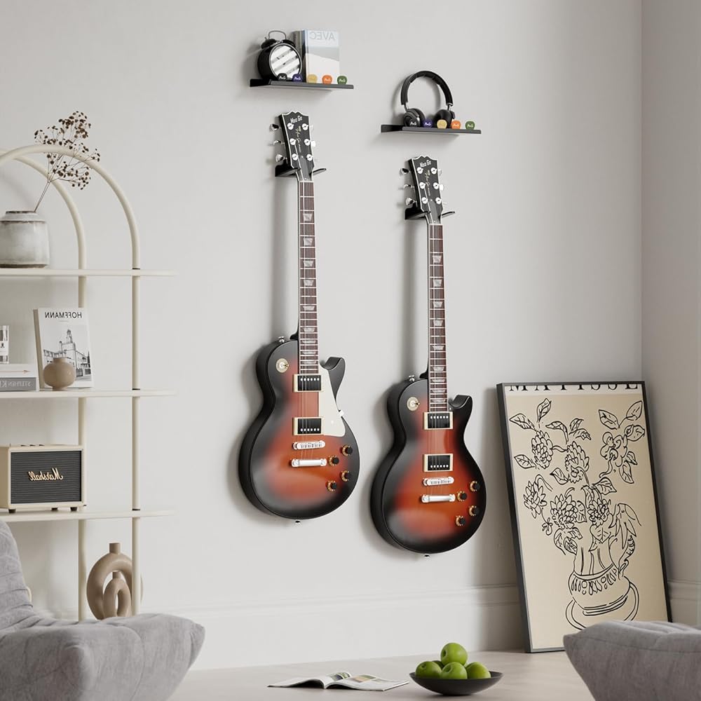سهولة التركيب: التثبيت سريع ومباشر، مع تضمين جميع الأجهزة الضرورية. يمكن تركيب حامل الجيتار هذا في دقائق، مما يوفر شاشة آمنة وأنيقة لأدواتك، مما يجعله مثاليًا للاستخدام في المنزل والاستوديو.