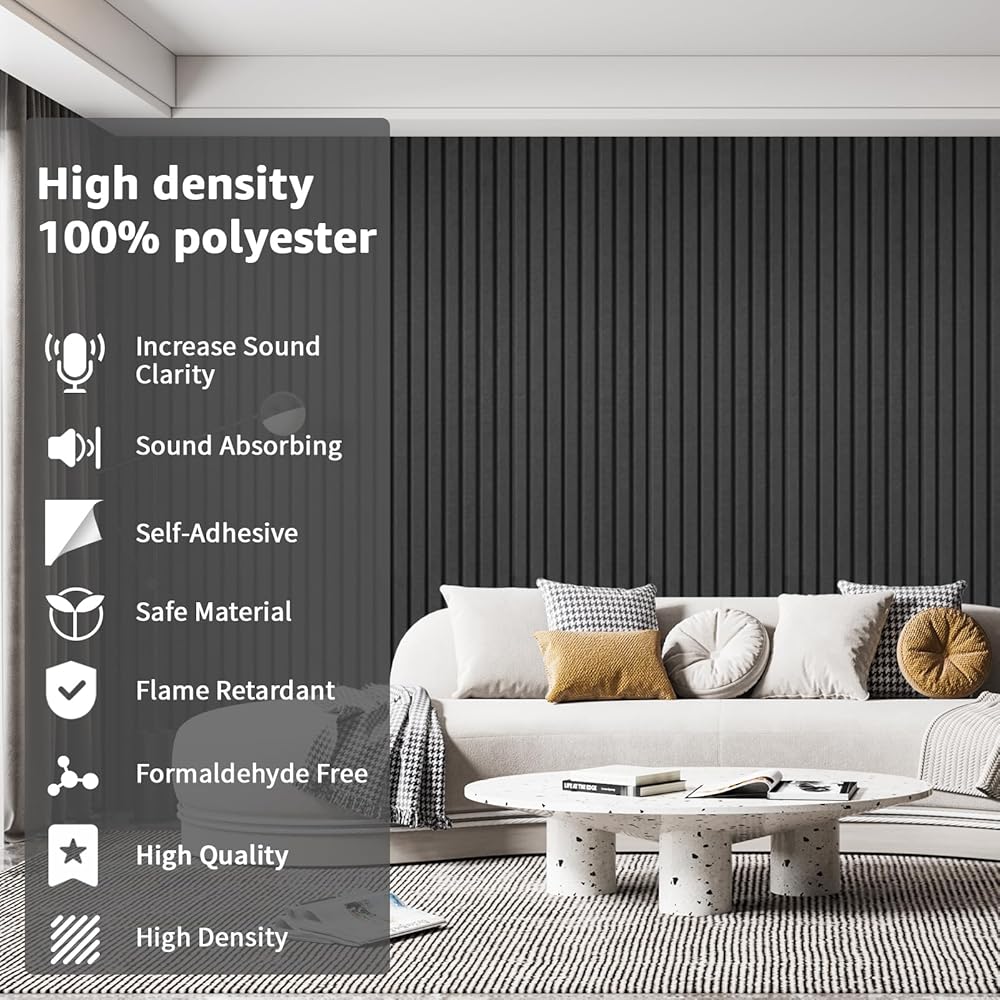 • لوحات صوتية مطورة: تتضمن هذه المجموعة 10 ألواح عازلة للصوت ذاتية اللصق، مقاس كل منها 47.24 × 11.81 × 0.35 بوصة. يساعد تصميم اللوحة الأكبر حجمًا على تشتيت المزيد من الضوضاء وإزالة الصدى بشكل أكثر فعالية من اللوحات الأصغر حجمًا.