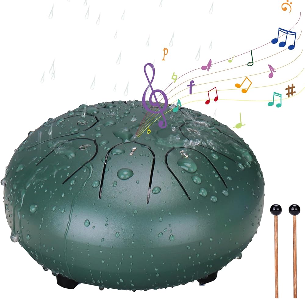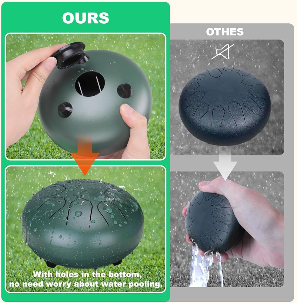 【مادة قوية ومتينة】: مصنوعة بعناية من الفولاذ المختار عالي الجودة، هذه الطبلة ذات قطرة المطر ليست أنيقة في المظهر فحسب، ولكنها تتمتع أيضًا بمتانة ممتازة. فهي قادرة على تحمل جميع أنواع الطقس القاسي، مما يضمن أنها ستوفر لك الاستمتاع بالموسيقى الرائعة لفترة طويلة