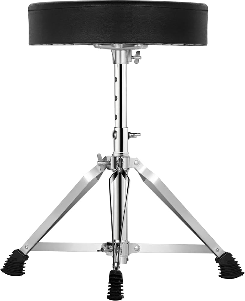 [ثبات لا مثيل له]: يتميز مقعد الطبل بثلاثة أكمام مطاطية غير قابلة للانزلاق تمنع عرش الطبل من التحرك أثناء العزف على الطبول. تشكل ثلاثة دعامات دعم مزدوجة من سبائك الألومنيوم عالية الجودة هيكلًا مثلثًا ثابتًا، مما يوفر دعمًا قويًا وحملًا قويًا. -قدرة التحمل تحت التفاعل مع قضيب المركز الملولب