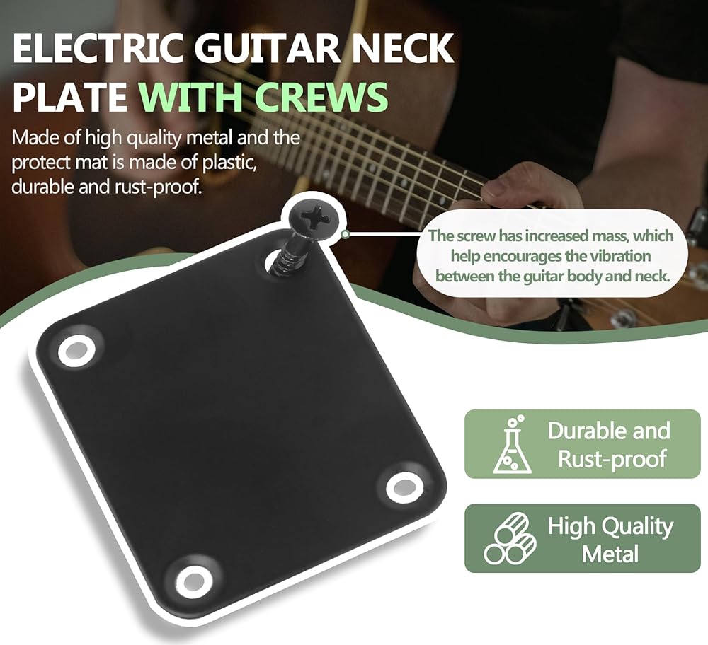 • Premium Material & Simple Design: Crafted from high-quality metal and plastic materials, the neck joint plate offers durability and rust-proof features, promoting long-term use without deformation. The simple yet elegant design contributes to maintaining sound resonance and protecting the guitar neck effectively.