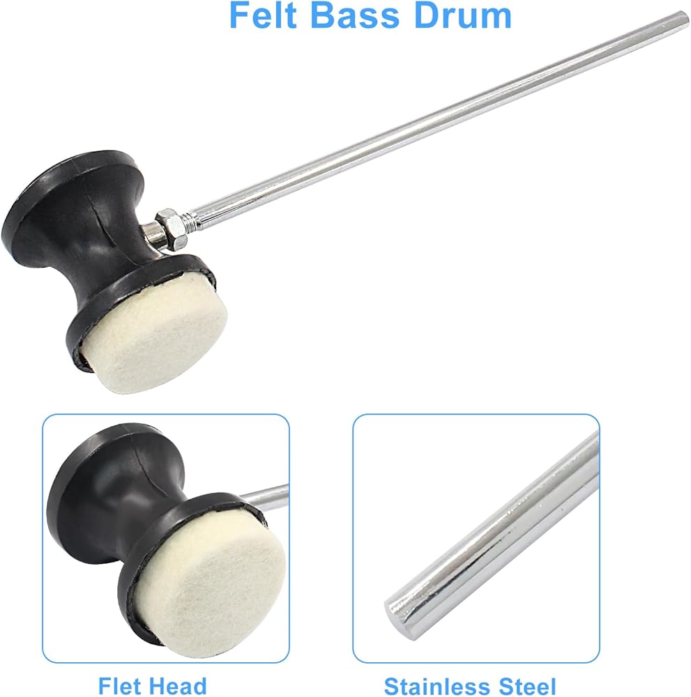 Good playing experience: The stainless steel handle design ensures comfortable grip, the wool felt head design ensures soft and smooth sound, and the compact and lightweight design ensures easy control, greatly improving your drum playing comfort and happiness