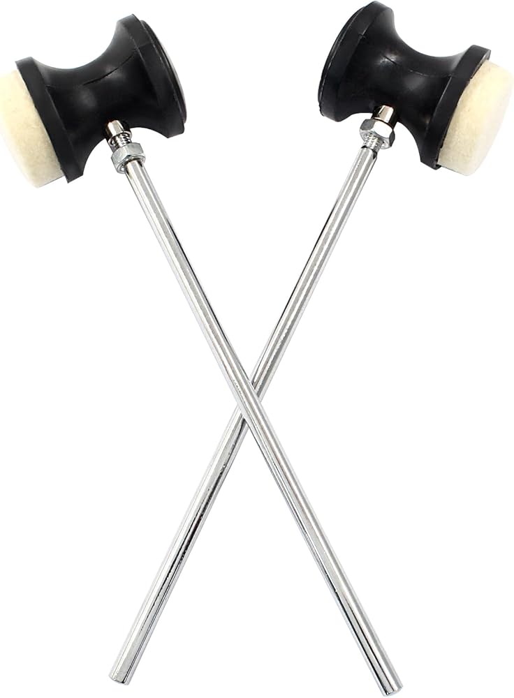 Piutouyar 2 Pack Dual Sided Wool Felt Bass Drum Pedal Beater, White Wool Felt Drum Pedal Mallet Anti-slip Drum Percussion Parts Bass Percussion Sticks for Instrument Band Accessory Part