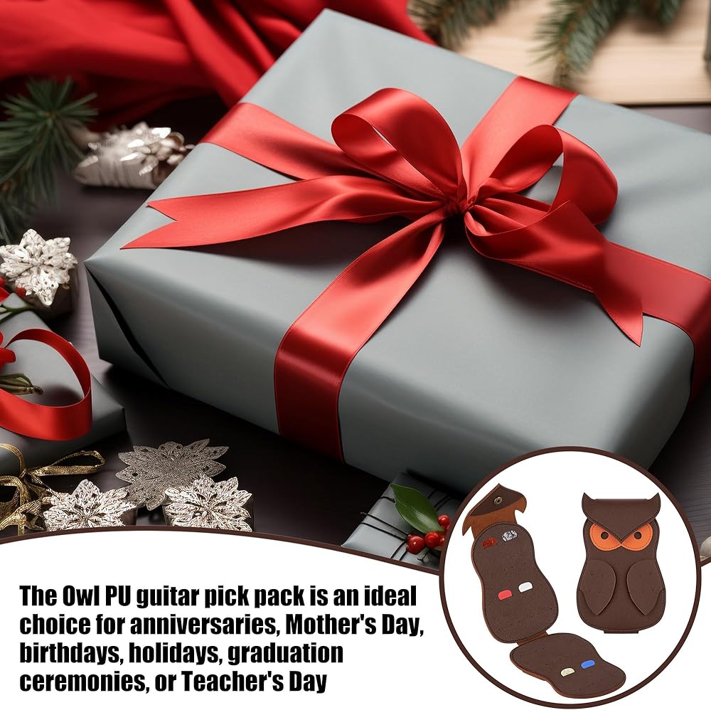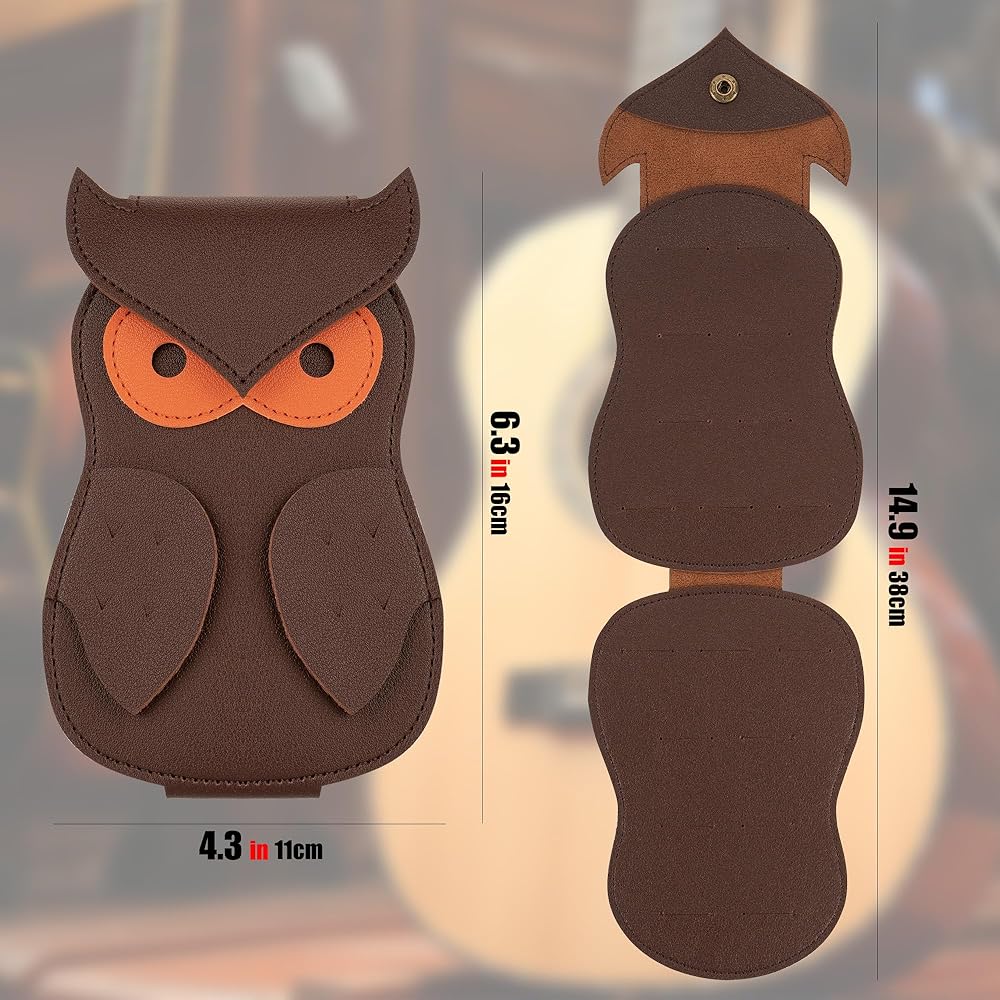 Cute guitar pick holder brown owl shape pouch 1 pack.