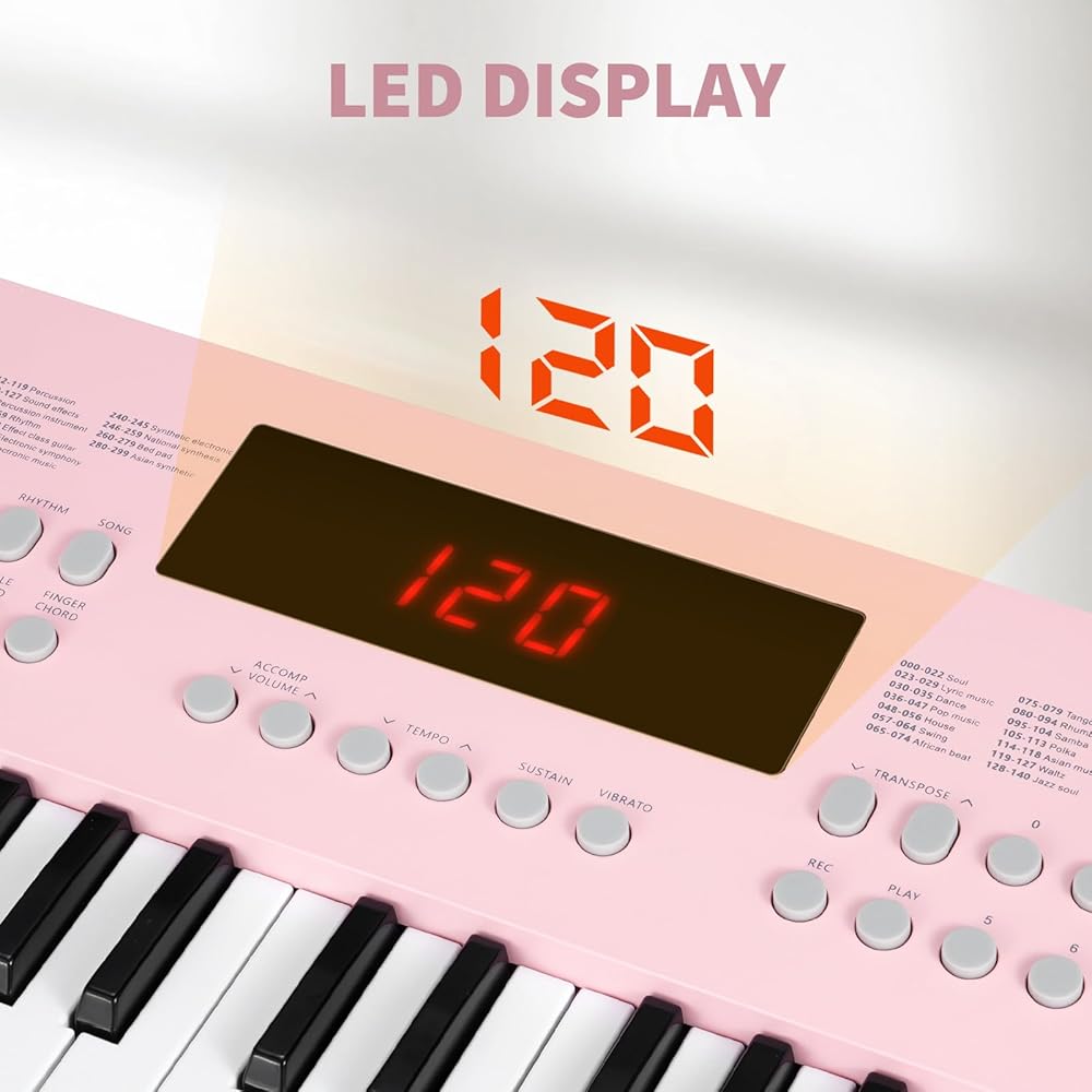 أصوات غنية وأنماط موسيقية: تأتي مع 80 أغنية و300 صوت و300 إيقاع، تغطي مجموعة متنوعة من أصوات الآلات وأنماط الإيقاع. كما أنها تأتي مع أصوات حيوانات وبيئية مثيرة للاهتمام، مثل تغريد الطيور والأمواج وما إلى ذلك. وهي تشجع الأطفال أو المبتدئين على استكشاف الأصوات المختلفة بشكل فعال وجعل عملية التعلم مليئة بالمرح.