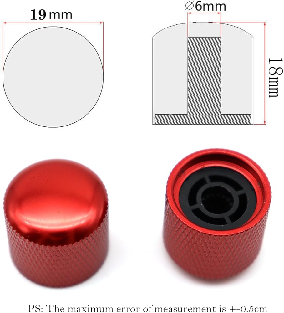 تحقق من المقاس: مقبض مقياس جهد التحكم الإلكتروني لعمود قطر 6 مم، ومقبض التحكم في مستوى الصوت، ومقبض الصوت، ومقبض الجيتار، ومقابض الجيتار الكهربائي، فقط تحقق من حجم مقياس جهد الجيتار الخاص بك أو حجم المقابض القديمة قبل الشراء.