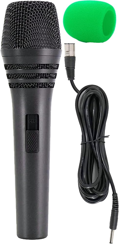 ميكروفون ديناميكي - مفتاح تشغيل وإيقاف - شاشة الرياح الخضراء الصوتية - كابل XLR بطول 17 قدم إلى 1/4 بوصة - ميكروفون للغناء أو أي أداة صوتية