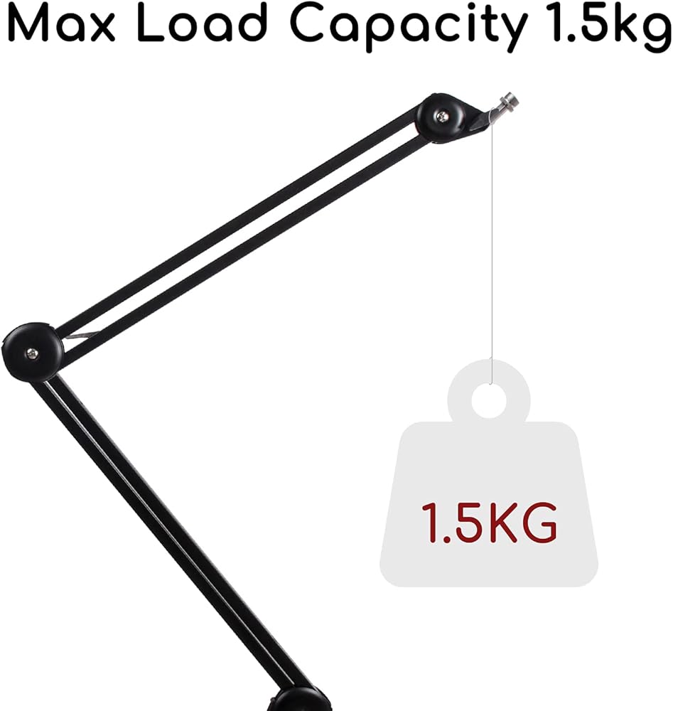 أقصى سعة تحميل لحامل الميكروفون هي 1.5 كجم. يزن الميكروفون عادةً حوالي 0.5 كجم، مما يعني أن حامل الميكروفون يمكنه حمل 3 ميكروفونات.