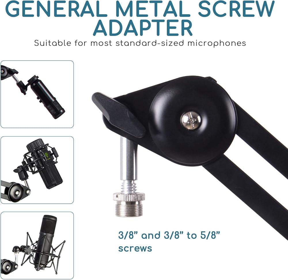 تم تصميم مشبك الطاولة لحامل الميكروفون للحمل عالي التحمل، وقد تم تصميم حامل المكتب المصنوع من سبائك الزنك مع وسادة مضادة للخدش، ويمكنه حماية مكتبك بشكل جيد، وزيادة الثبات. ارتفاع قابل للتعديل 5.6 سم يجعله مناسبًا لمعظم المكاتب.