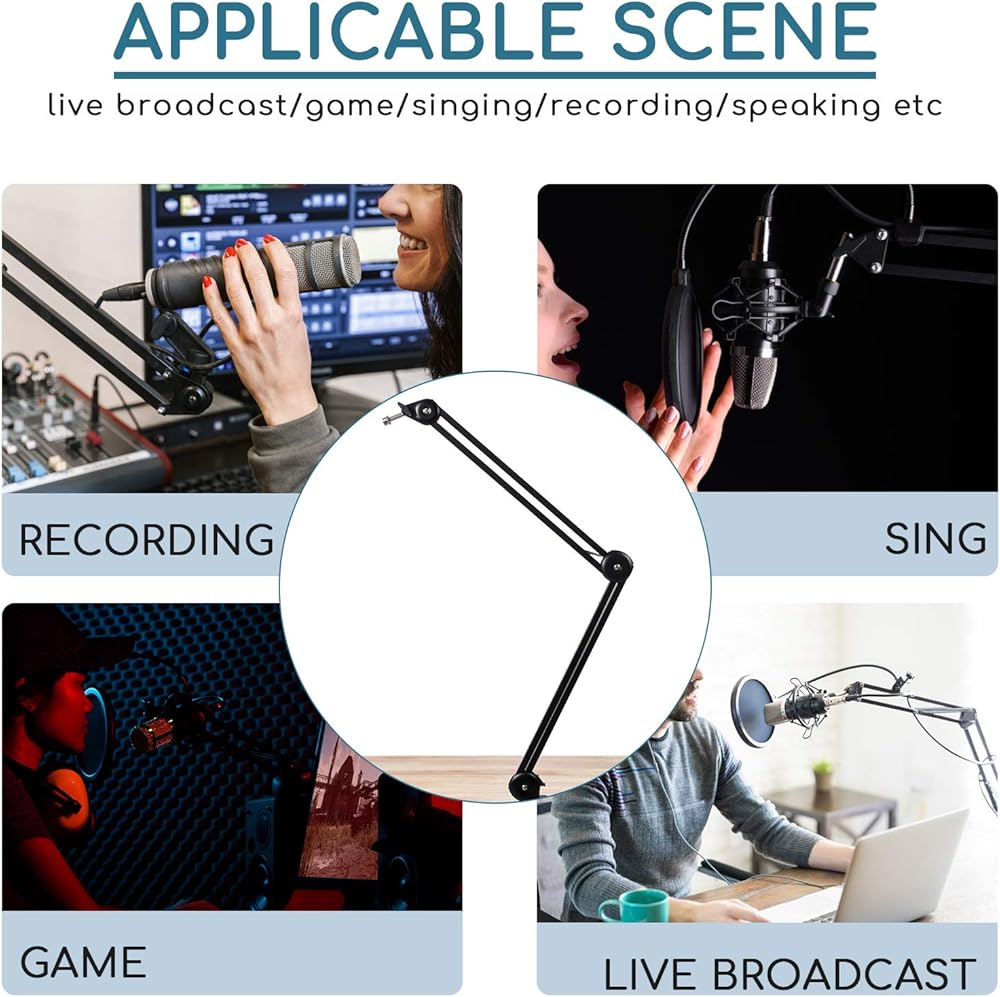 حامل ذراع الميكروفون مصنوع من سبائك الألومنيوم. بالمقارنة مع المدرجات الأخرى، فهي تتمتع بذراع أكبر وأقوى. يبلغ طول الذراع الواحد 48 سم بينما يبلغ طول معظم المدرجات الأخرى أقل من 35 سم. ويبلغ عرض الأنبوب المعدني 0.55 بوصة، وسمك 1 مم، بينما يبلغ عرض الأنابيب الأخرى 0.39 بوصة فقط. حامل ذراع الميكروفون Kmise أقوى وأكثر استقرارًا ومتانة.