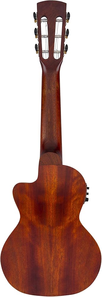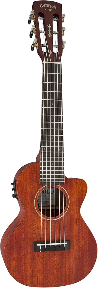 Outstanding Tenor 6-string Acoustic-electric Ukulele from Gretsch Gretsch Guitars brings their luthier mastery to the world of ukuleles with the G9126 Guitar-ukulele. Featuring a solid quartersawn mahogany top and laminated mahogany body with an ovangkol fingerboard, this beautifully designed 6-string acoustic-electric uke delivers great tone and feel. An ovangkol bridge and genuine bone nut and saddle provide even more resonance and tone support. And with a long, 17-inch scale and cutaway, you have even more fretted fun to play with — a feature uke enthusiasts here at GearNuts really appreciate. And when you are ready to plug in, the G9126 has a Fishman Kula preamp onboard for stellar amplified tone.Tonewoods and Gretsch's open-pore finish The Gretsch G9126 Guitar-ukulele's organically warm tone comes courtesy of its mahogany top, back, and sides. The mahogany neck and ovangkol fingerboard are an ideal combination for optimizing the transfer of energy from the strings to