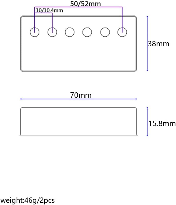 - Dimension: Neck pickup cover string spacing is 50mm, bridge pickup cover string spacing is 52mm and the external size is about 70x38x15.8mm(LxWxH).