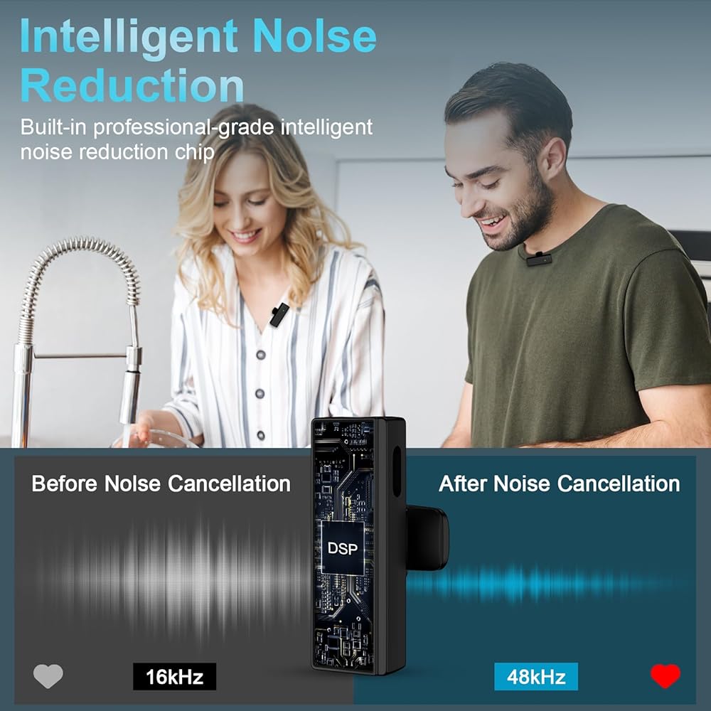 Wireless Lavalier Microphone with Nosie Reduction - [Compatible with All USB C Port Devices]