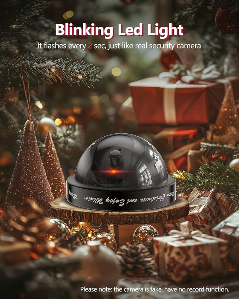 سانتا كلوز: بفضل أسلاكها الواقعية وتصميمها الذي يحاكي كاميرا أمنية حقيقية، فإن سانتا يمكن للكاميرا أن تحقق نفس التأثير الرادع الذي تحققه الكاميرا الحقيقية لتأمين منزلك. سواء كنت تحاول إبقاء أطفال الحي في الطابور أو تريد فقط مزحة زوارك، فإن كاميرا سانتا هي رادع ممتع وفعال. (يرجى ملاحظة: هذا عنصر تزييني، ولا يحتوي على إمكانيات تسجيل الفيديو)