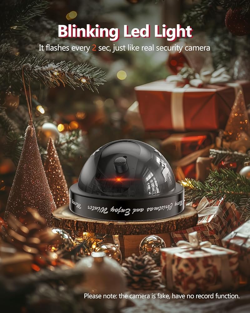 • سانتا كلوز: بفضل أسلاكها الواقعية وتصميمها الذي يحاكي كاميرا أمنية حقيقية، فإن سانتا يمكن للكاميرا أن تحقق نفس التأثير الرادع الذي تحققه الكاميرا الحقيقية لتأمين منزلك. سواء كنت تحاول إبقاء أطفال الحي في الطابور أو تريد فقط مزحة زوارك، فإن كاميرا سانتا هي رادع ممتع وفعال. (يرجى ملاحظة: هذا عنصر تزييني، ولا يحتوي على إمكانيات تسجيل الفيديو)