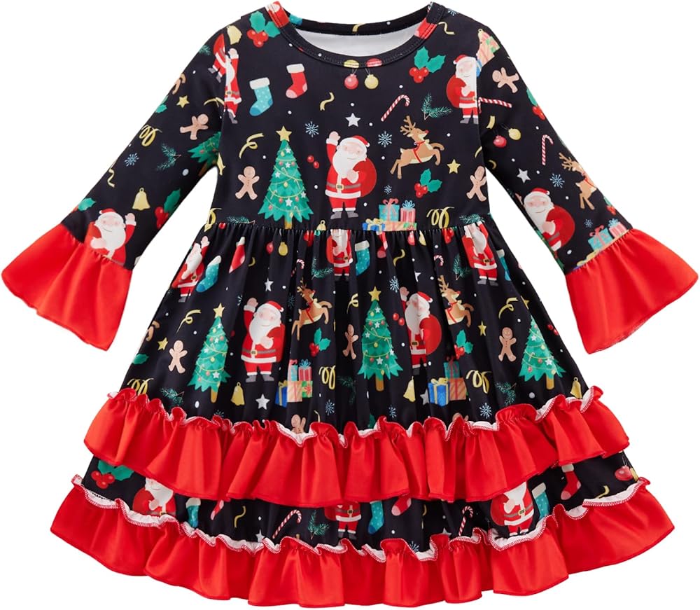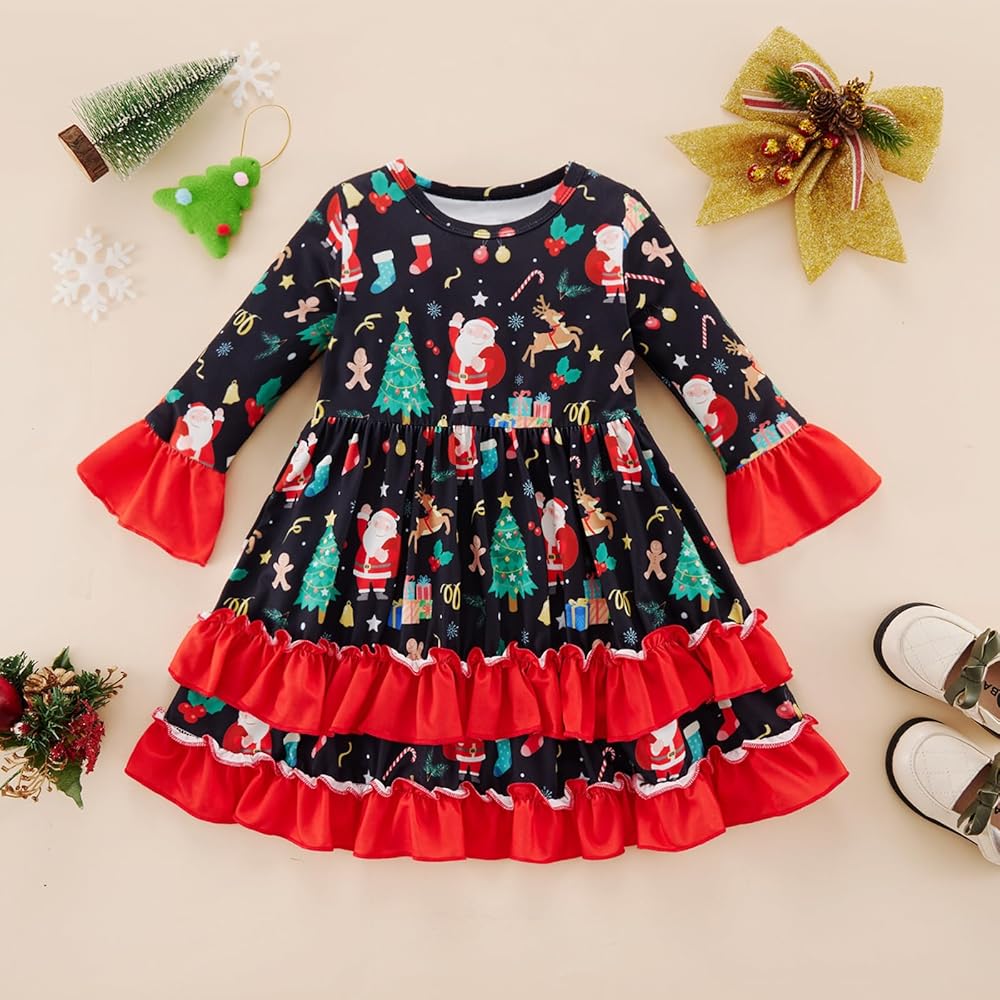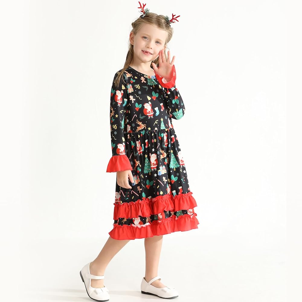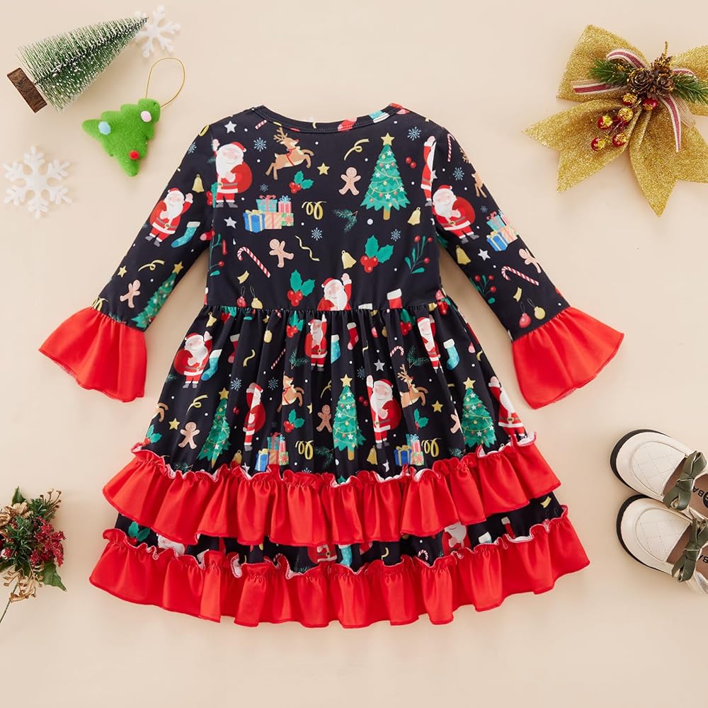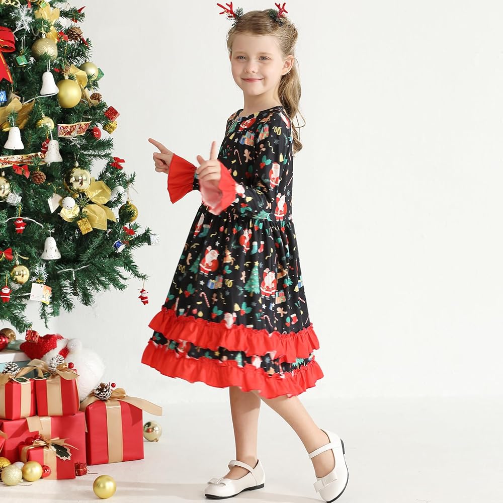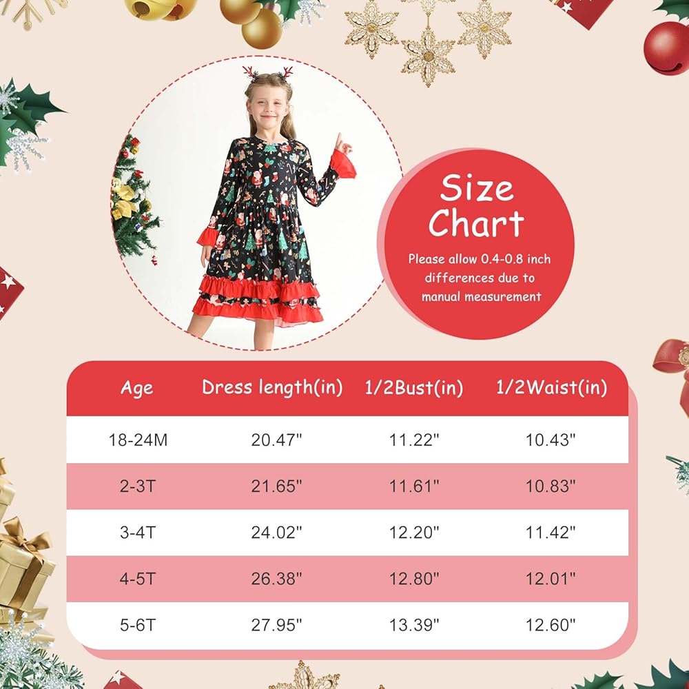 المقاسات: فستان عيد الميلاد للفتيات الصغيرات، مناسب لعمر 18-24 شهرًا، 2-3t، 3-4t، 4-5t، 5-6t.