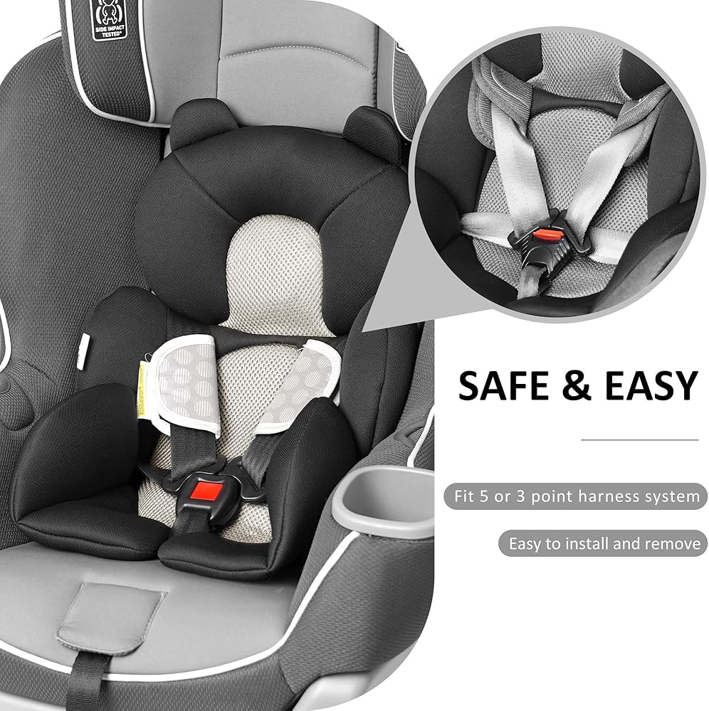 مسند رأس قابل للفصل: تأتي بطانة الأطفال هذه مع مسند رأس قابل للفصل يمكن إزالته ليناسب أي مقعد سيارة مع مساند رأس سميكة أو ضيقة.
